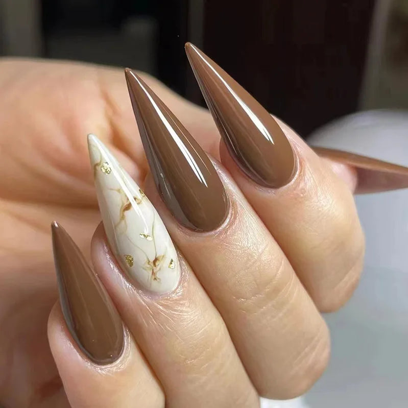 24Pcs Mid-length Stiletto Nails Art with Glue Wearable Almond Press on False Nails Black Cat's Eye Design Manicure Fake Nail