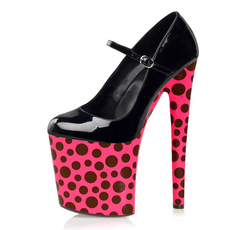 Farve Lavt Round Toe Women's Pumps Party Props Sexy Fetish 20cm Super High Heeled Shoes Platform 8 tommer pumper