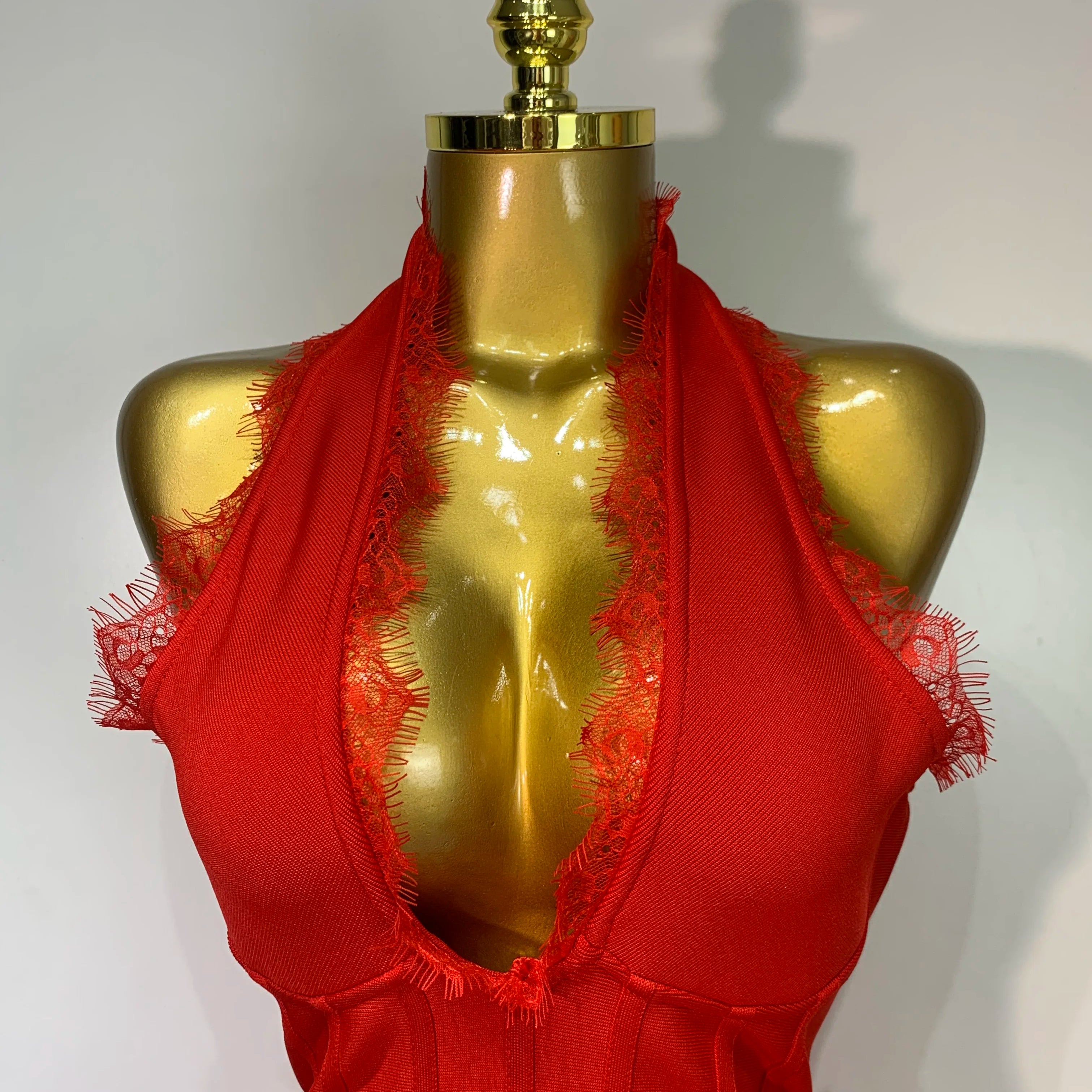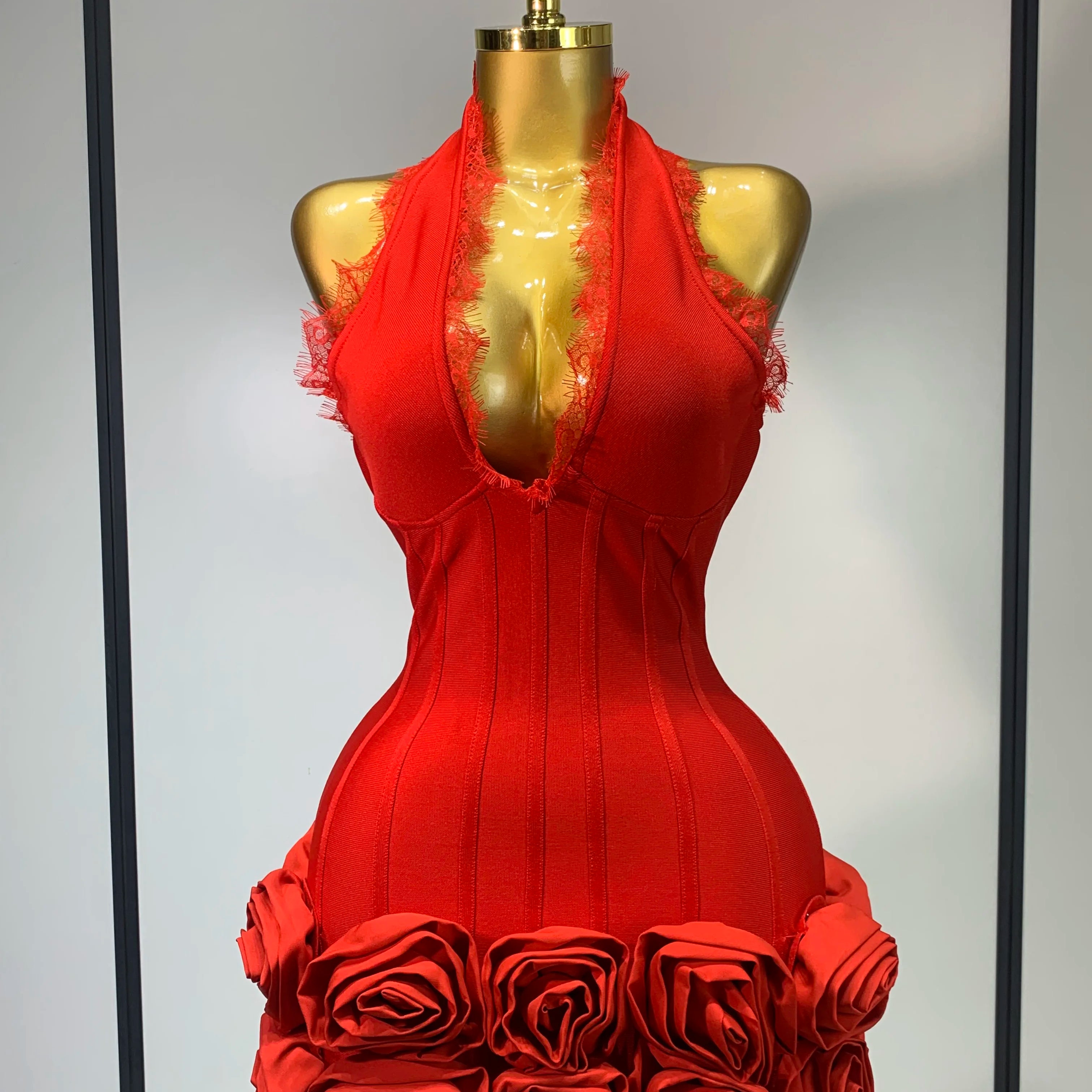 Elegant Women Sleeveless Sexy Halter Applique Bodycon Mini Bandage Dress Celebrity Fashion Nightclub Party Luxury Birthday Dress