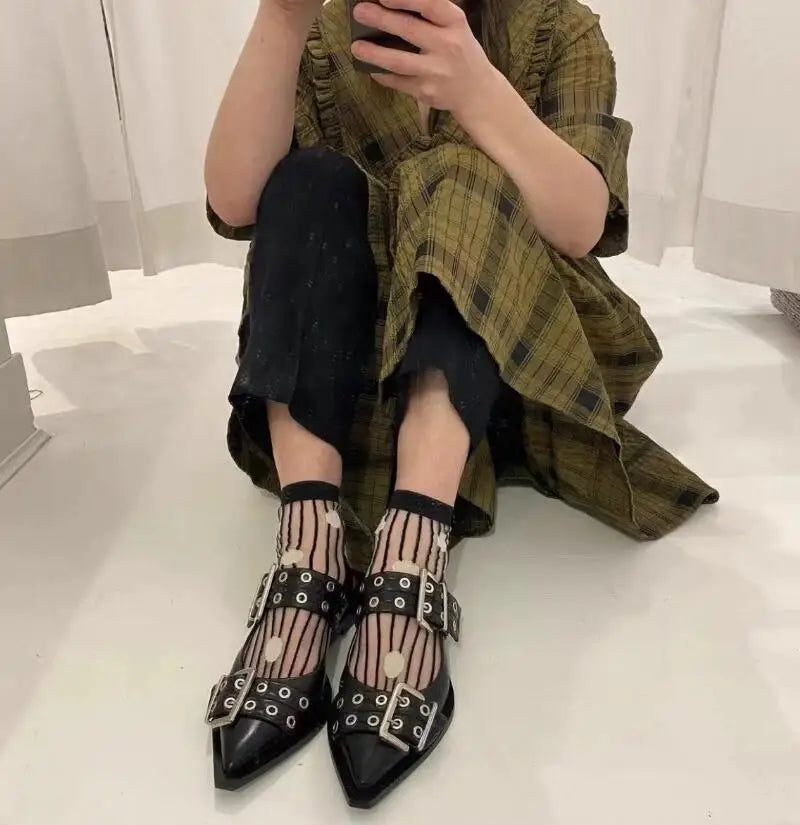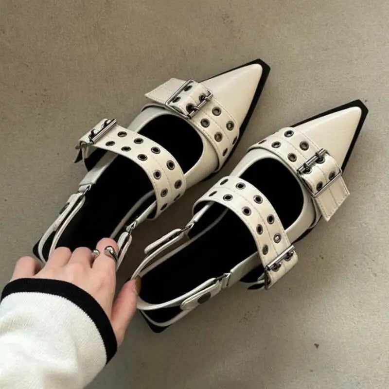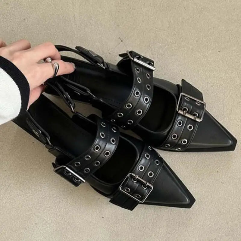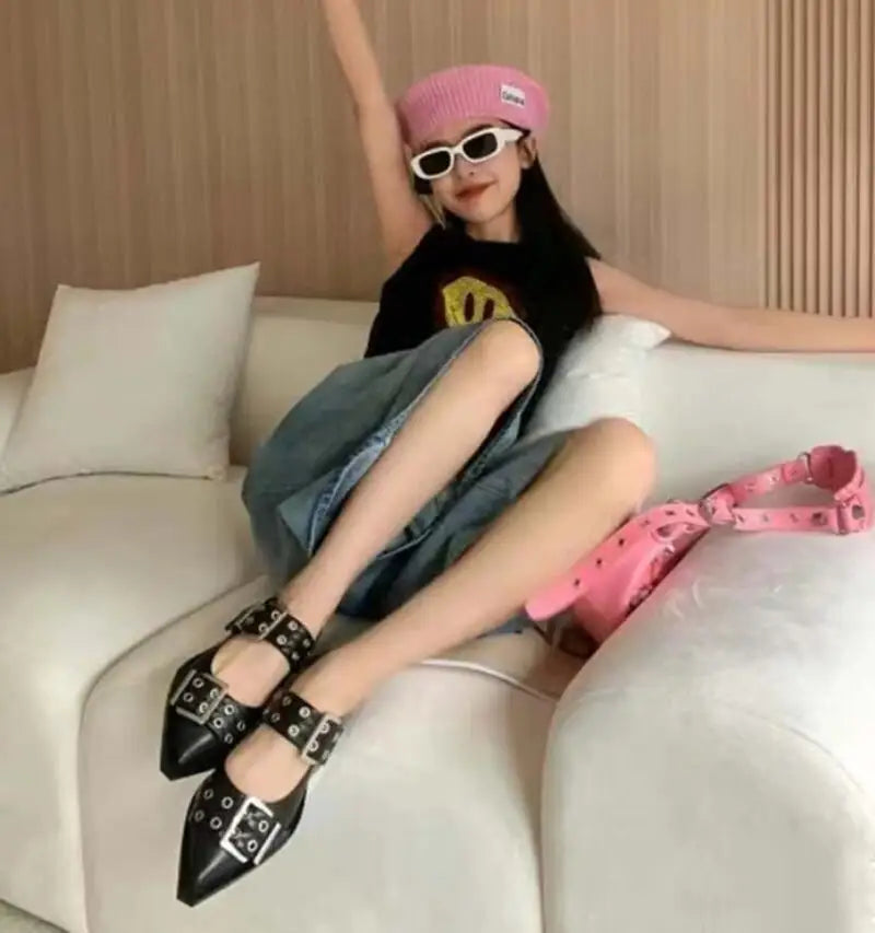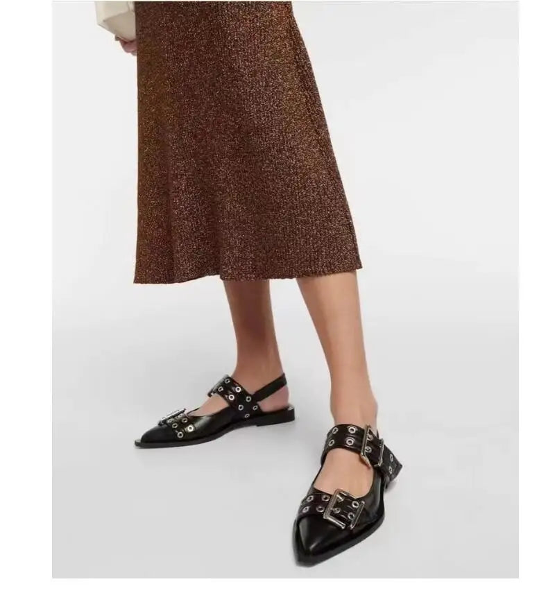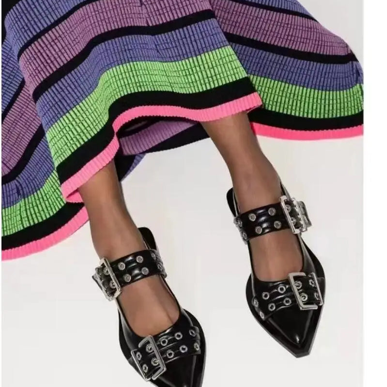 Europäische und amerikanische Frühling/Sommer 2024 Neue Marke Rivet Sandals Low Heel Spoced Mody Women Muller Schuhe Schwarz große Größe 42