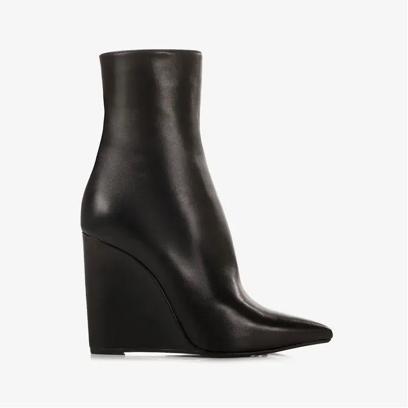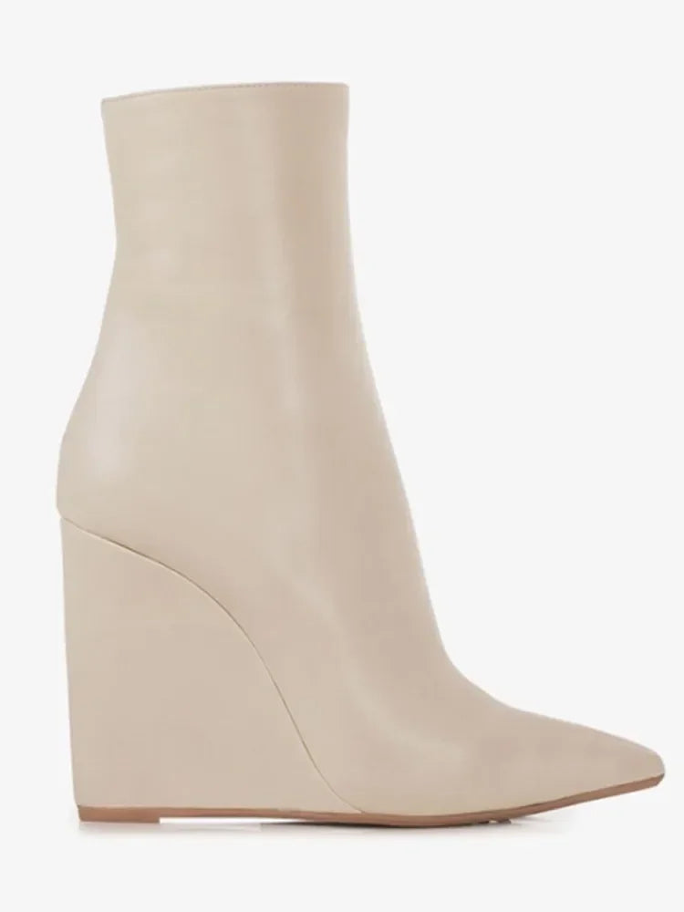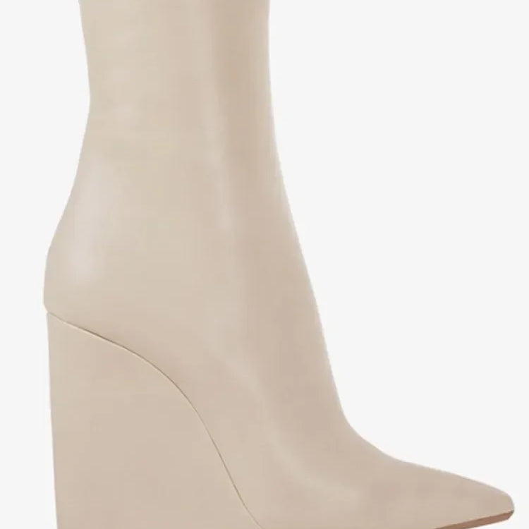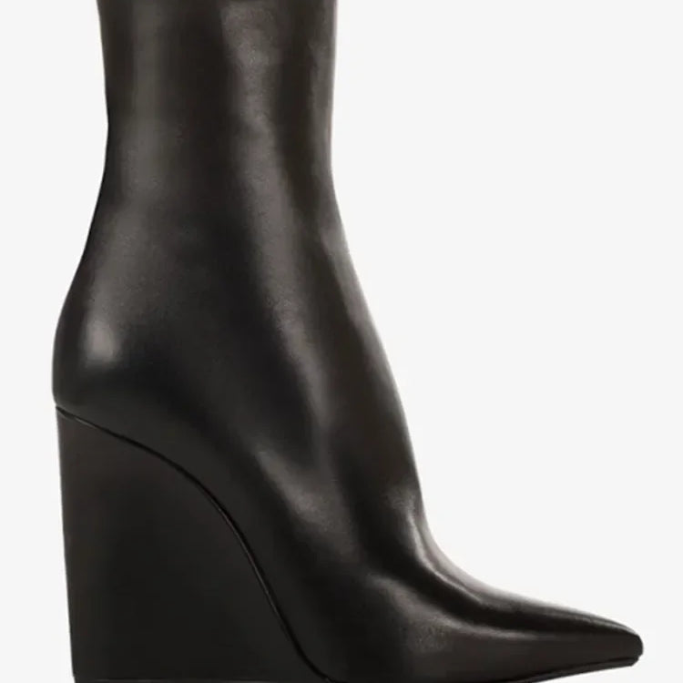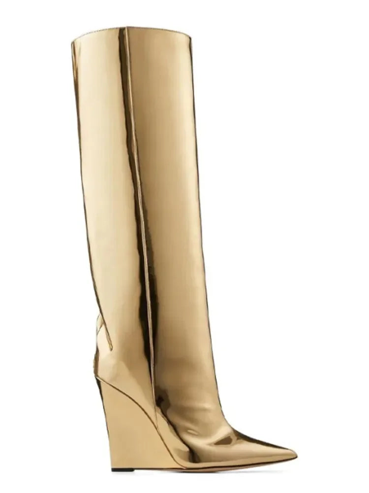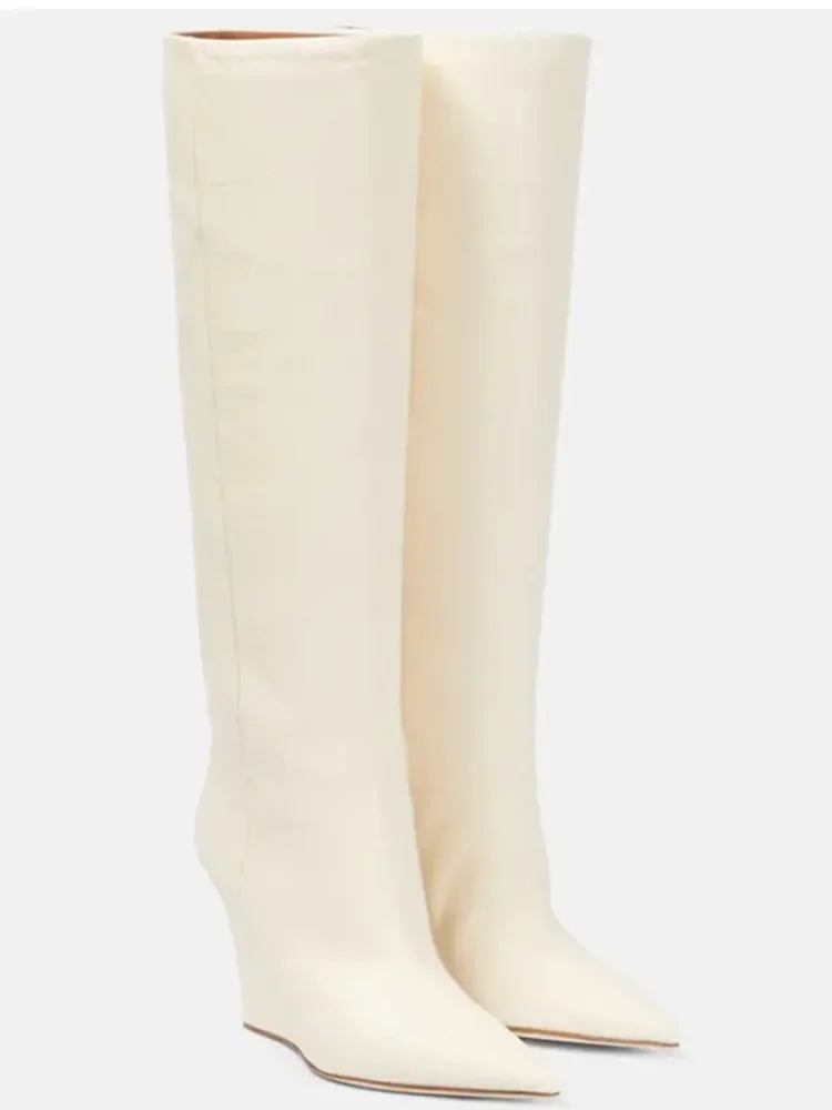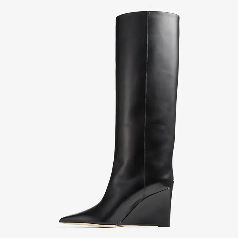 Neue europäische und amerikanische dicke alleinige Knie -Lange Frauenstiefel mit spitzer Seite Reißverschluss dicke Hochheel -Frauen mit mittleren Länge Stiefel