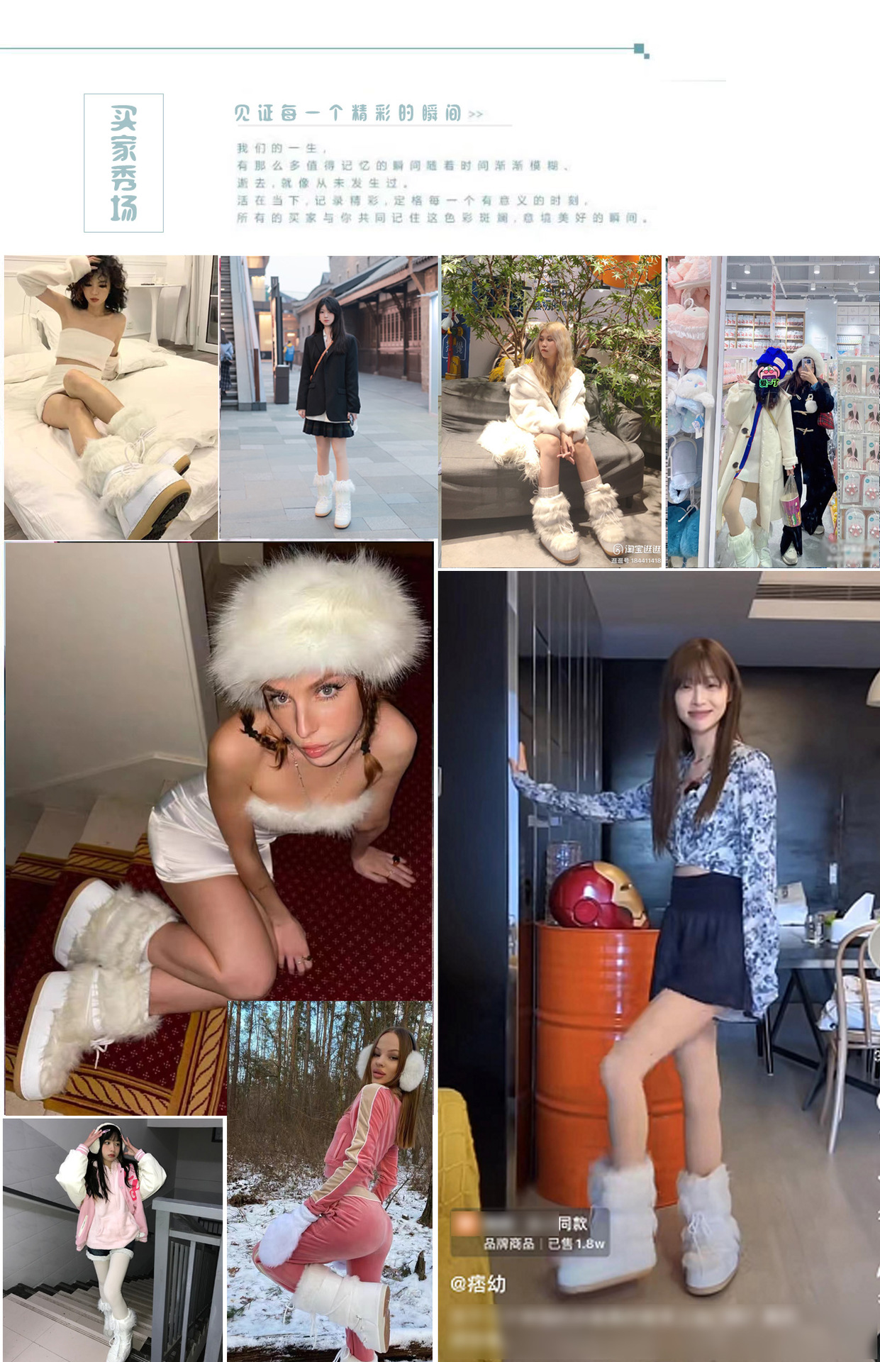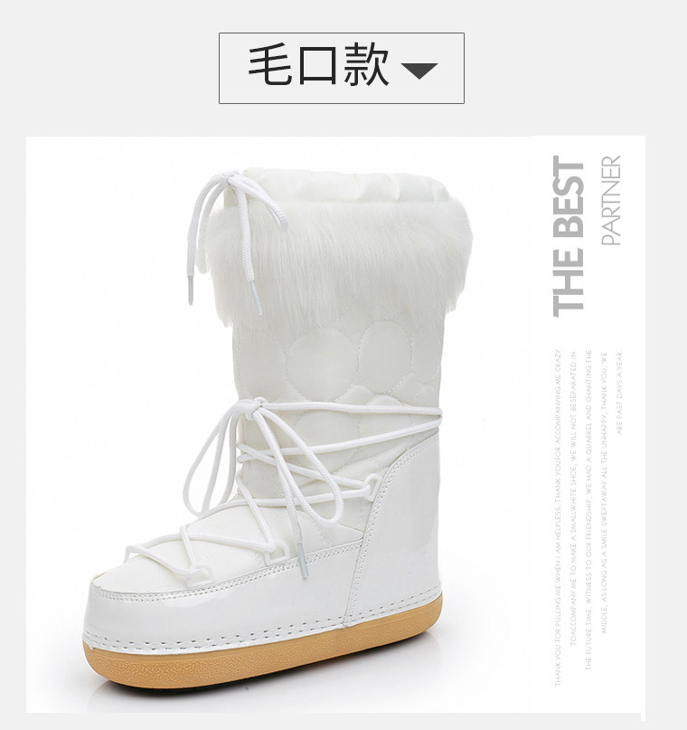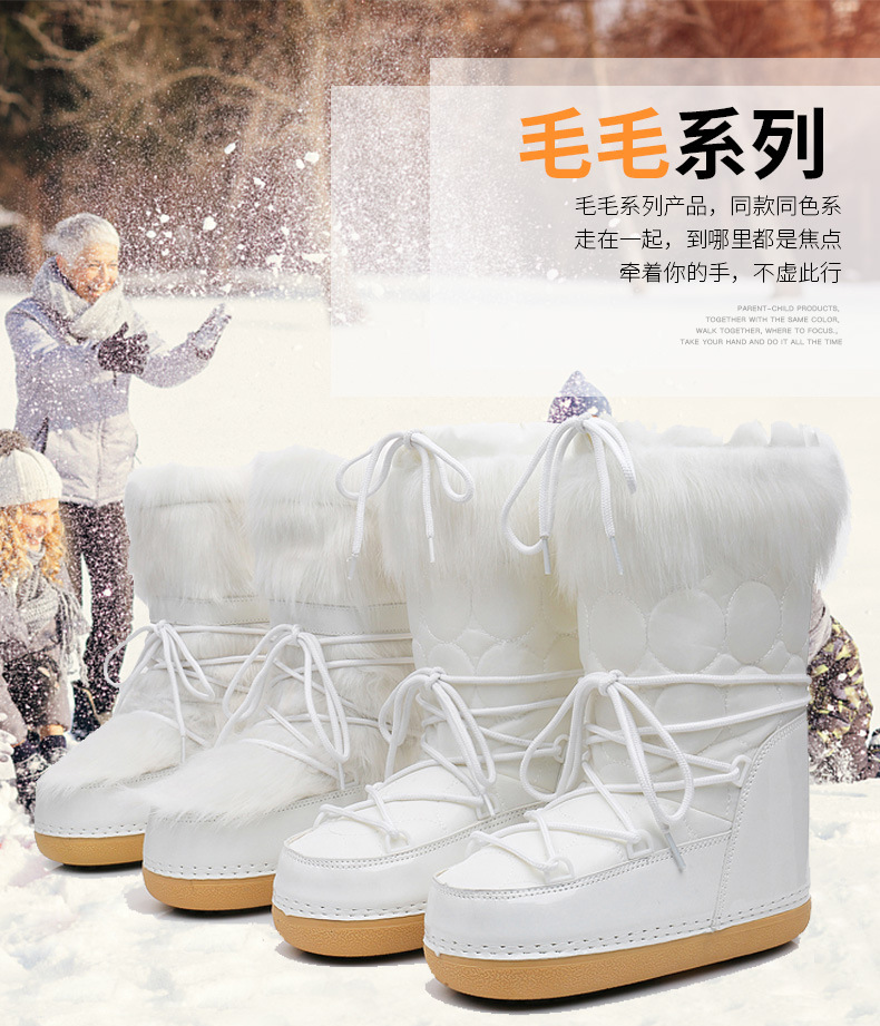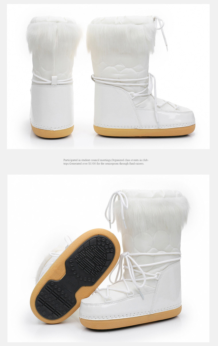Winter Schneestiefel Mode-Raumstiefel dickes Kunstpelz flauschiger Schnürpeak-up warmes wasserdichtes Gummi-Gummi-Plush-Stil-Mondschuhe Mädchen Stiefeletten Stiefeletten