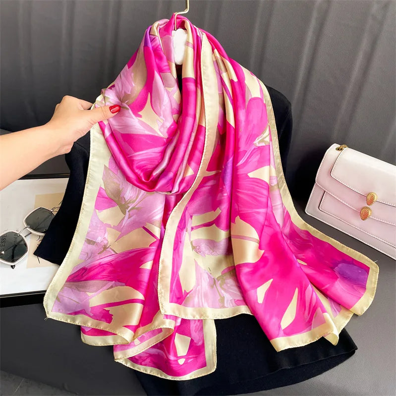 Europe United Hot Women Luxury 180*90cm Women Silk Scarf Female Beach Shawl Bandanna Foulard Muffler Scarves Wraps