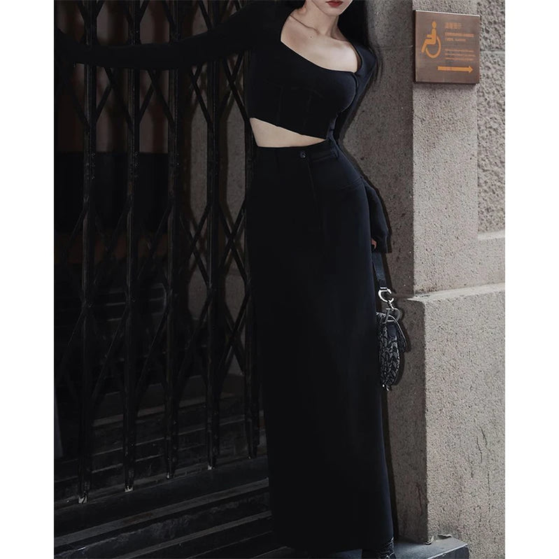 Elegant Slit Midi Skirts Women Streetwear High Waist Suit Skirt Office Lady Korean Fashion Grey Black Slim Pencil Skirts