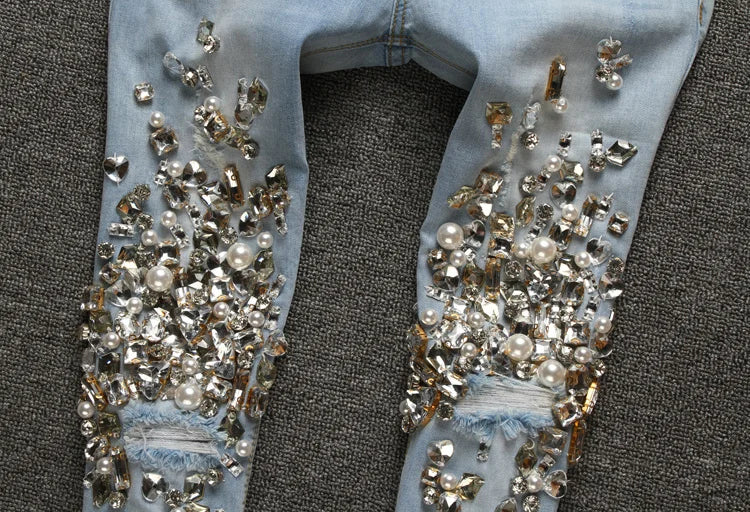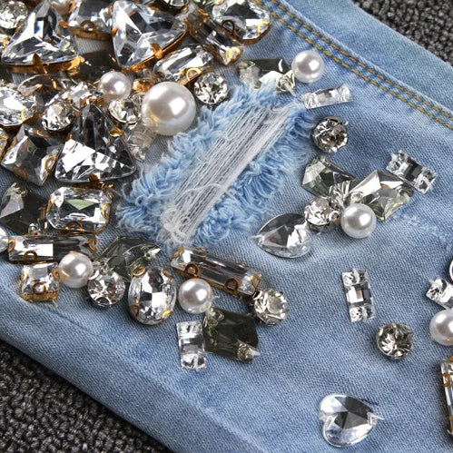 Muoti Top Naisten käsintehty helmillä farkut Lady Rhinestone Timant -farkut farkut reikä laiha korkean venyksen lyijykynä housut