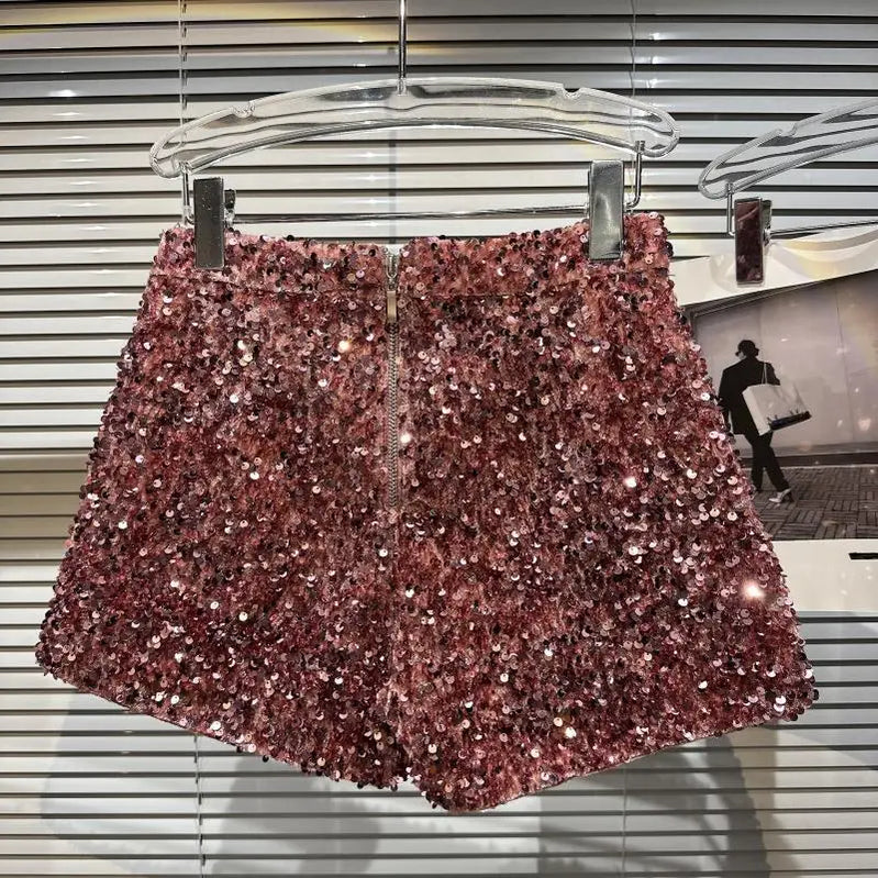Uudet klubipesut shortsit naiset seksikkäitä paljetit shortsit löysät korkeat vyötäröt katuvaatteet leveät jalat lyhyet housut sliver black women vaatteet