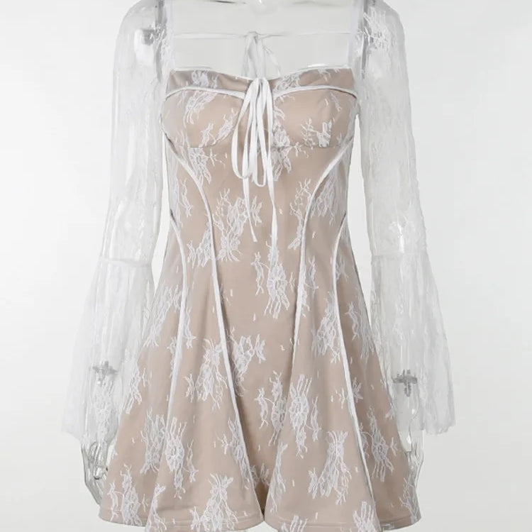Robe courte imprimée élégante pour femme, automne-hiver, col carré, manches longues, dos nu, ample, soirée, sexy