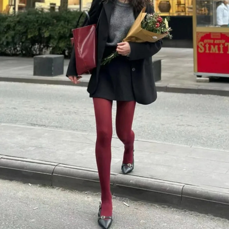 Lot de 1 ou 2 collants vintage rouge vin pour femme, fins, épais, super élastiques, sexy, anti-crochets
