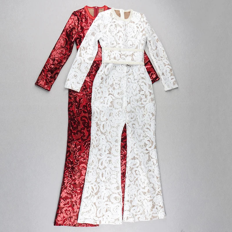 Combinaisons sexy en dentelle ajourée, pantalon flamme rouge, mode féminine, streetwear, collection printemps 2021