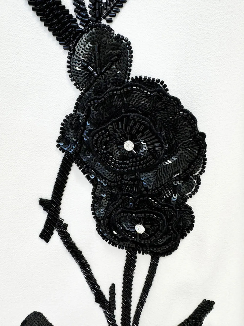 2024 New Women Sequined Bead Flower Elegant Dress O-Neck Long Sleeved Bodycon Mini White Dress Celebrity Cocktail Party Vestidos