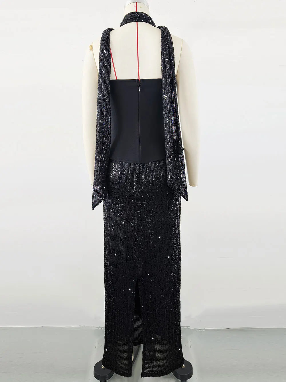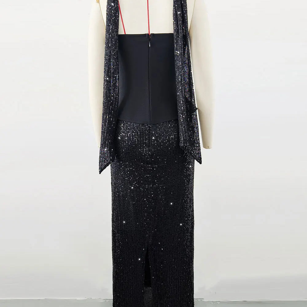 2025 Elegant Women's Light Luxury Dress+Strapless Sleeveless Bodycon Patchwork Long Dress Cocktail Evening Party Vestidos
