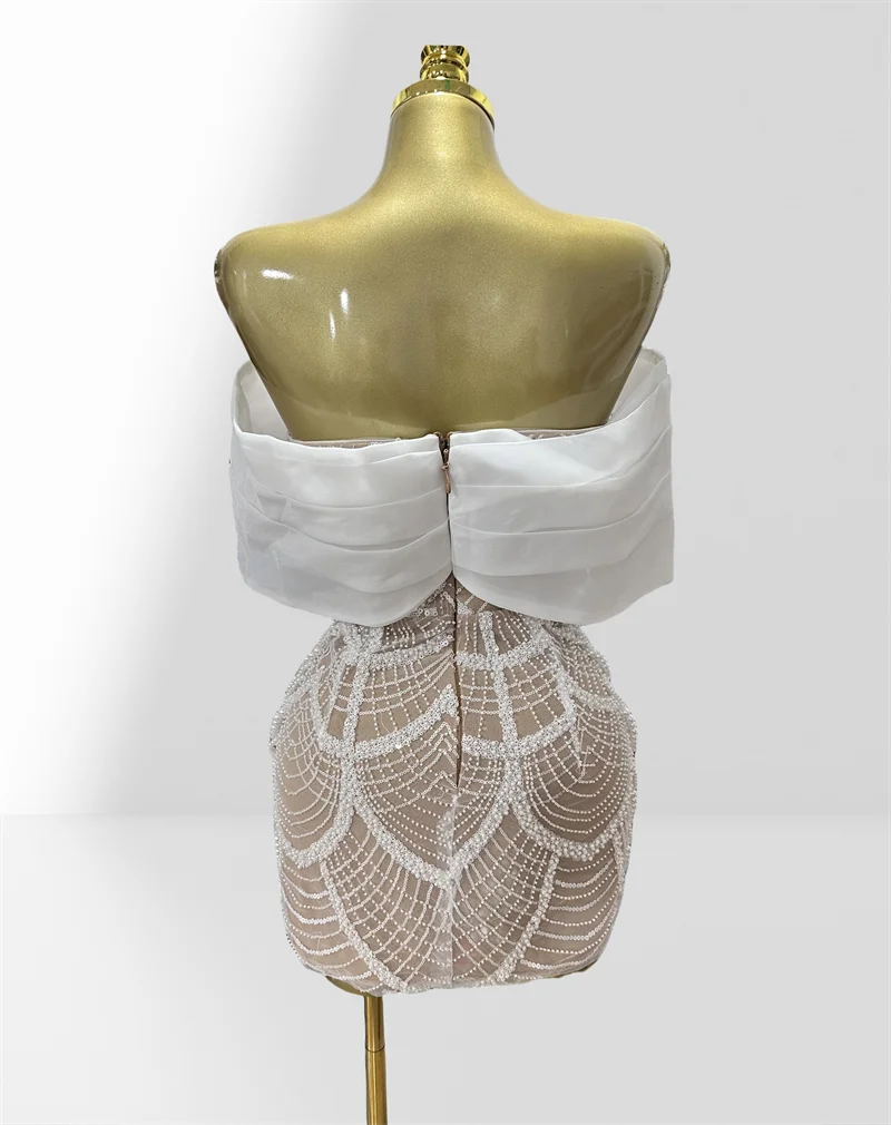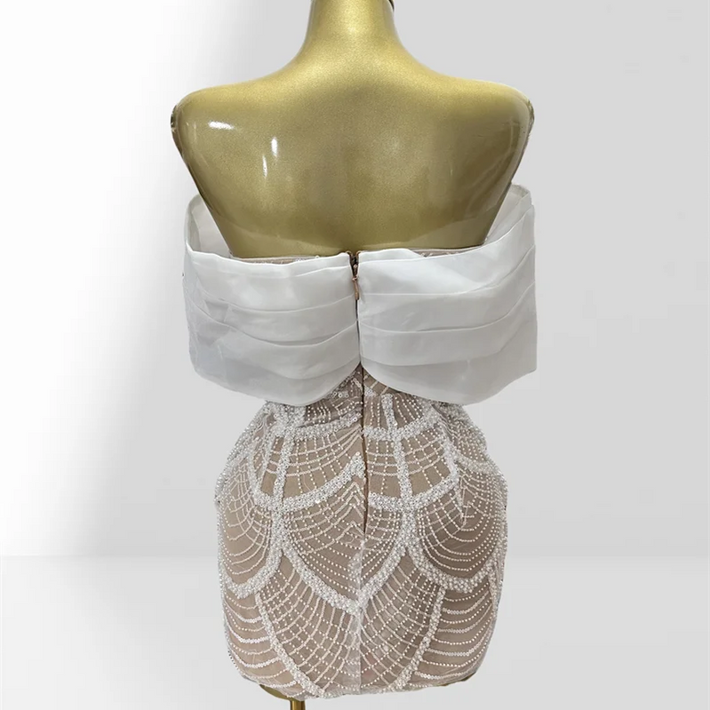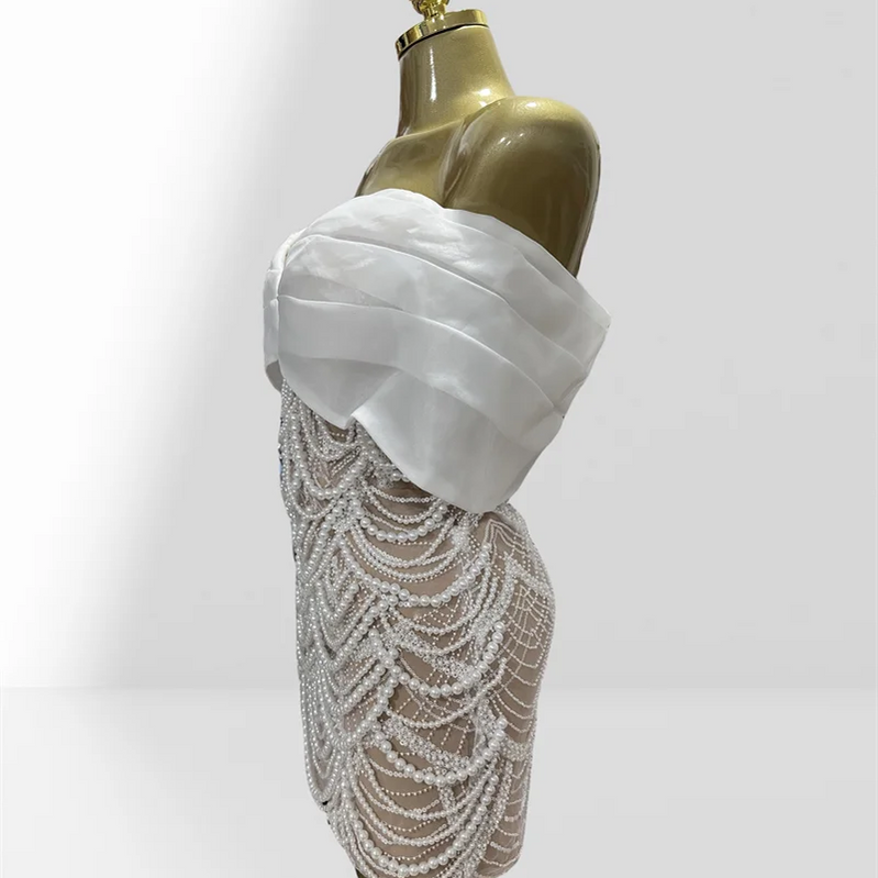 2025 Luxury Pearl Beading White Sequins Sexy Off The Shoulder White Mini Dress Woman Wedding Party Vestido Birthday Party Outfit