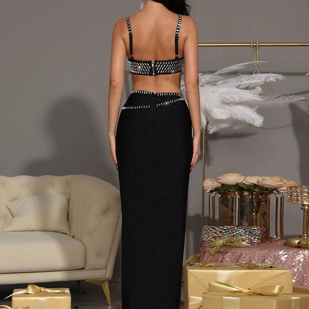 2025 Sexy Women's Nail Bead Design Bandage Dress Strapless Sleeveless Bodycon Backless Long Dress Cocktail Dinner Dress Vestitos