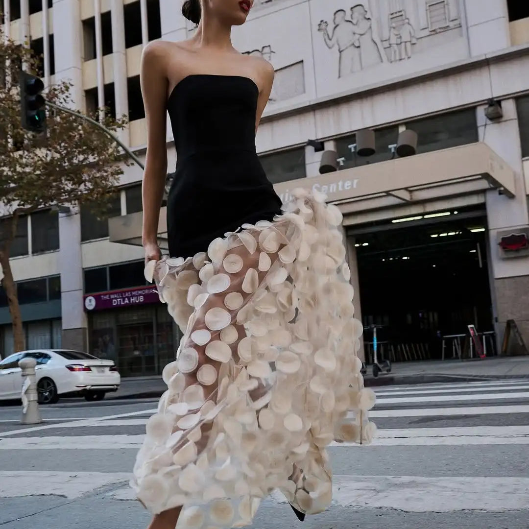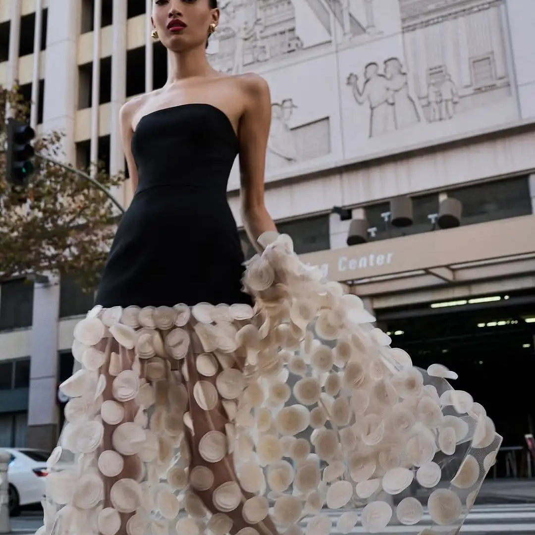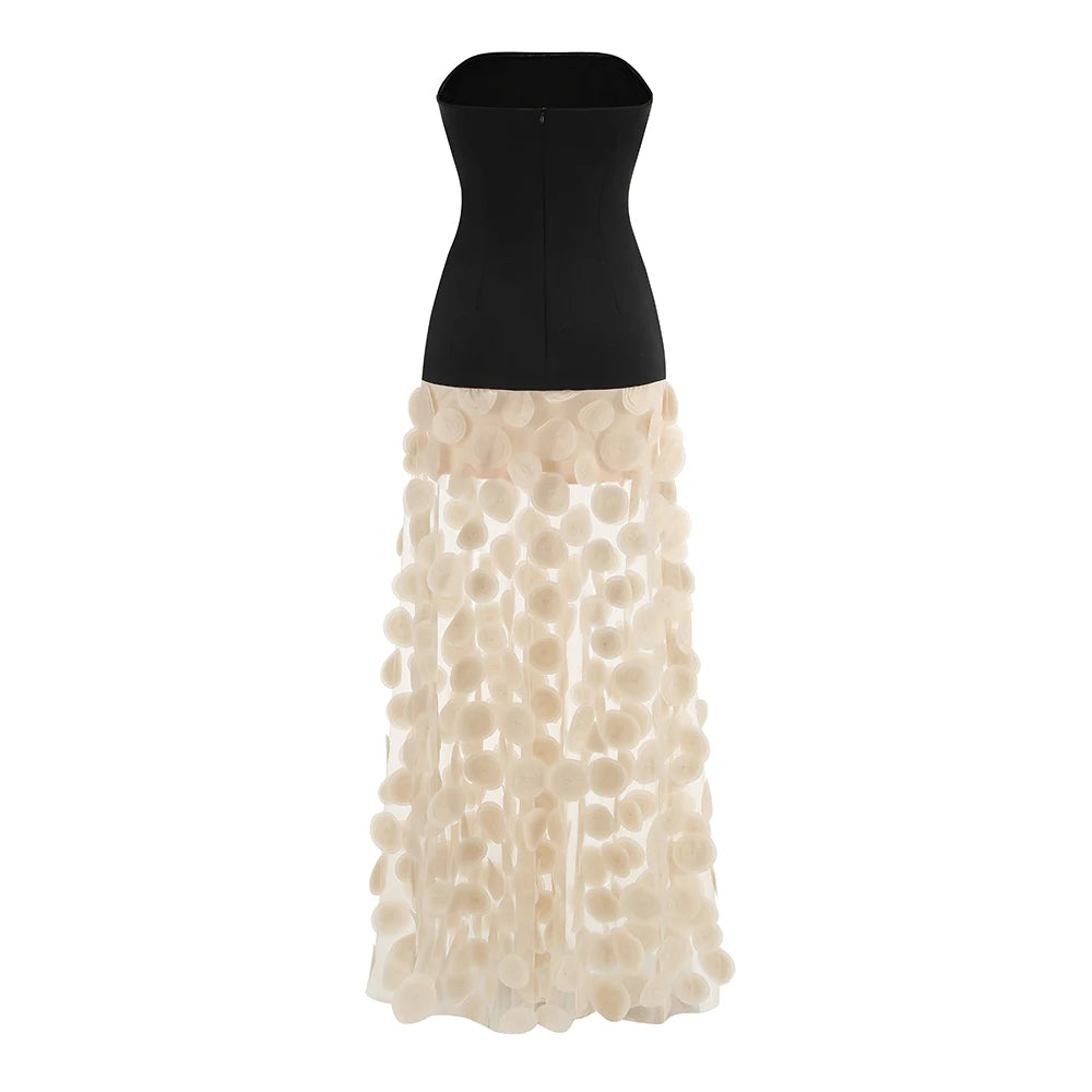 2025 Summer Black Strapless Apricot Hound Piece See-through Long Dress Hem Celebrity Birthday Party Dress Wedding Party Vestido