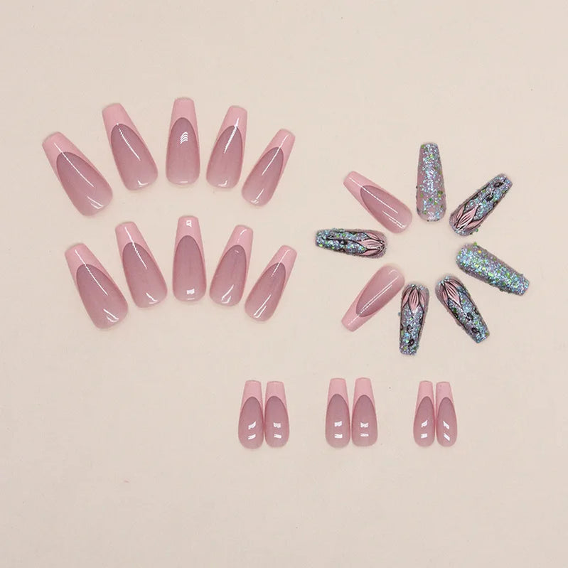24-piece Long French Pop Flash Nail with 1 Jelly Glue and 1 Nail File