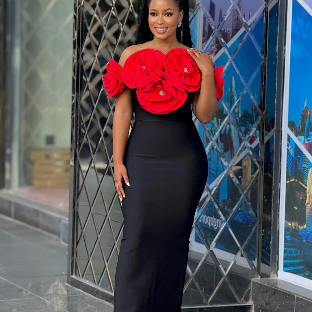 3 Colors Stereoscopic Flowers Sexy Off The Shoulder Ankle Lenght Bandage Dress Woman Birthday Party Vestido Wedding Party Outfit