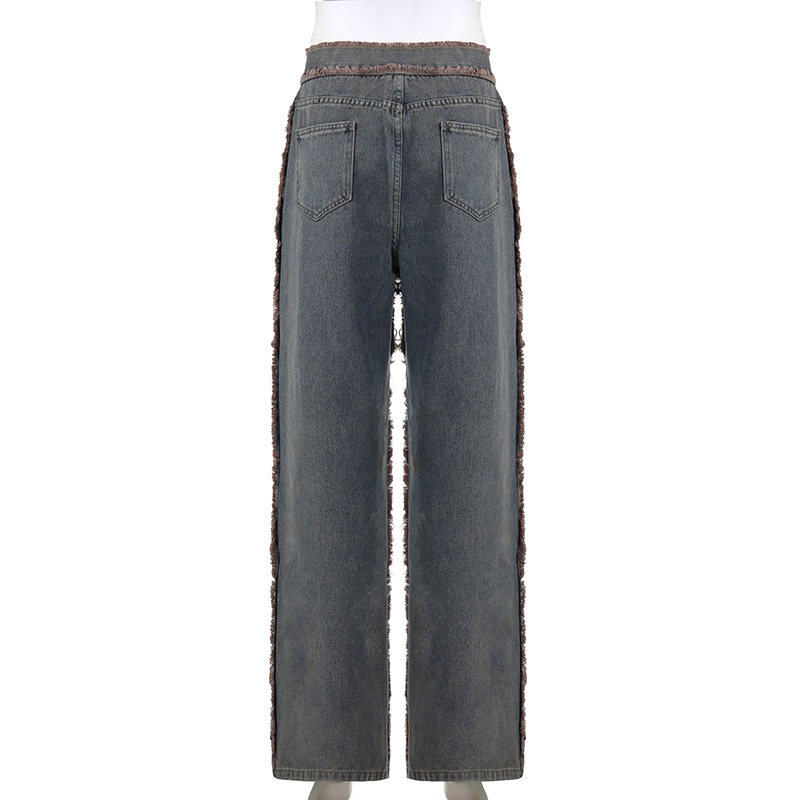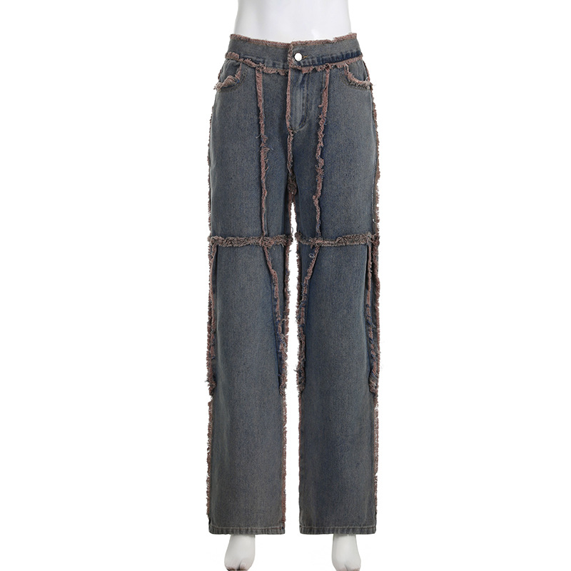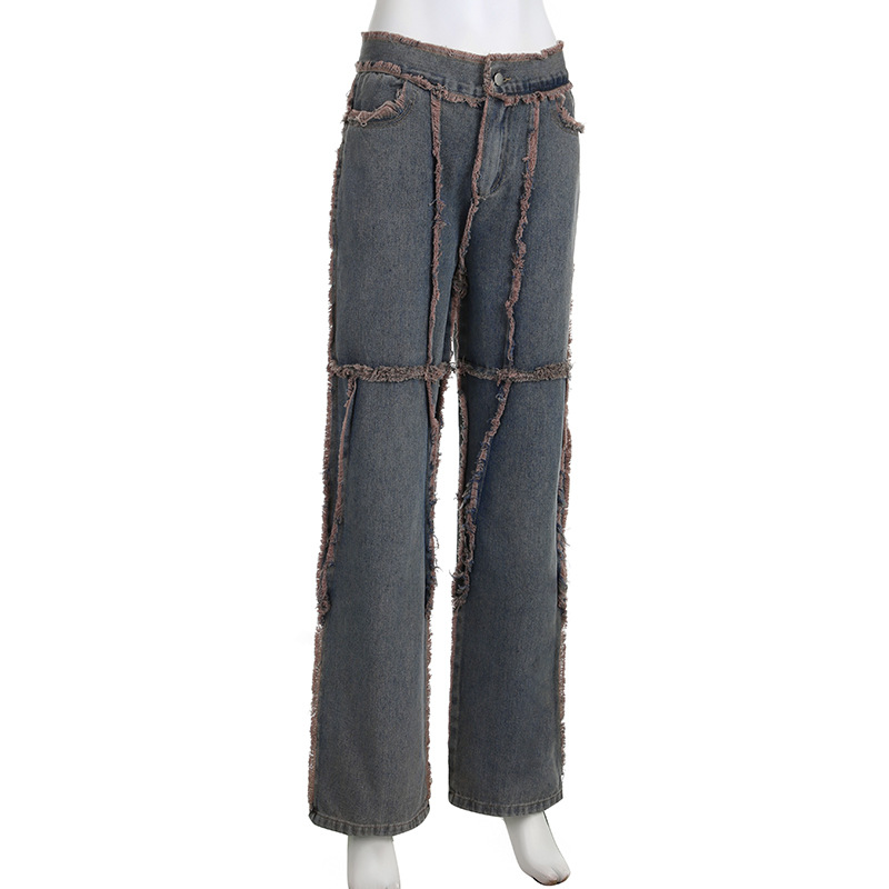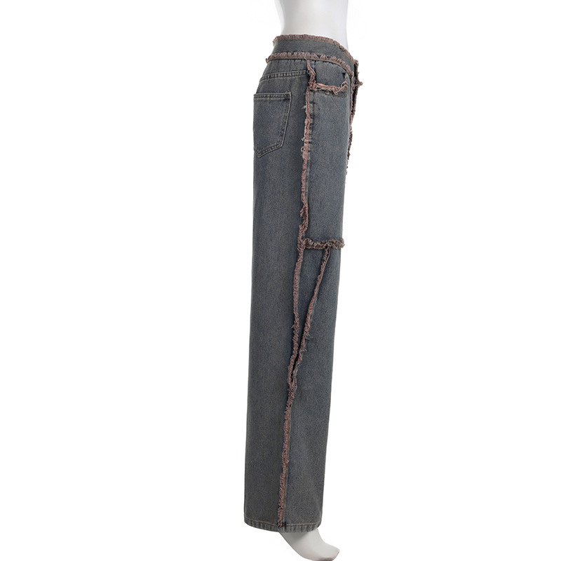 Streetwear Hip Hop Spliced Women Jeans Low Rise Loose Straight Tube Floor Dragging Pants Grunge Punk High Street Denim Pants Y2K