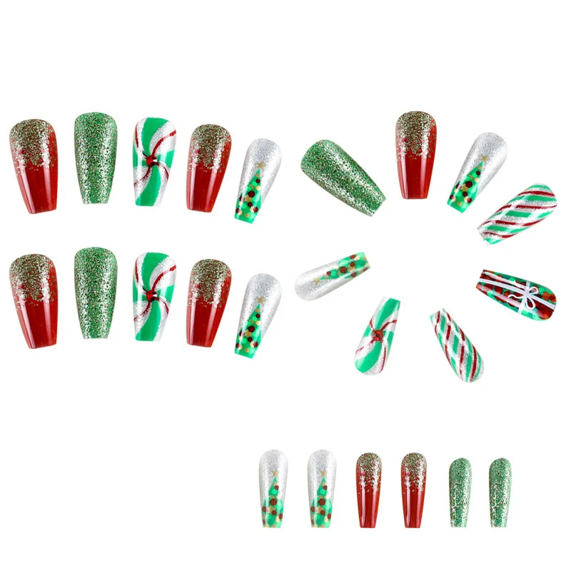 24 pcs Detachable Christmas Designs Kuku palsu dengan lem penutup salju cover penuh Hadiah permen Natal Tekan pada kuku palsu