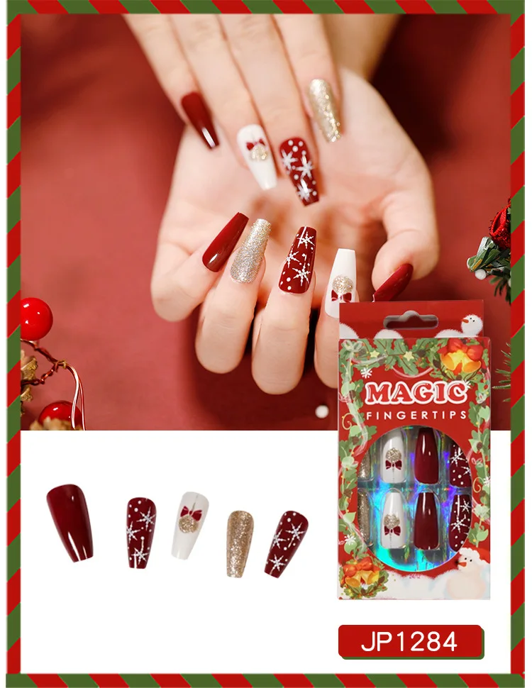 24 pcs Kuku palsu yang bisa dikenakan Koleksi Natal SELURUH KURUS PAITS FLAT FALUS ART DIHAPUS COVERAGE LENGKAP PRESS ON Tips Kuku