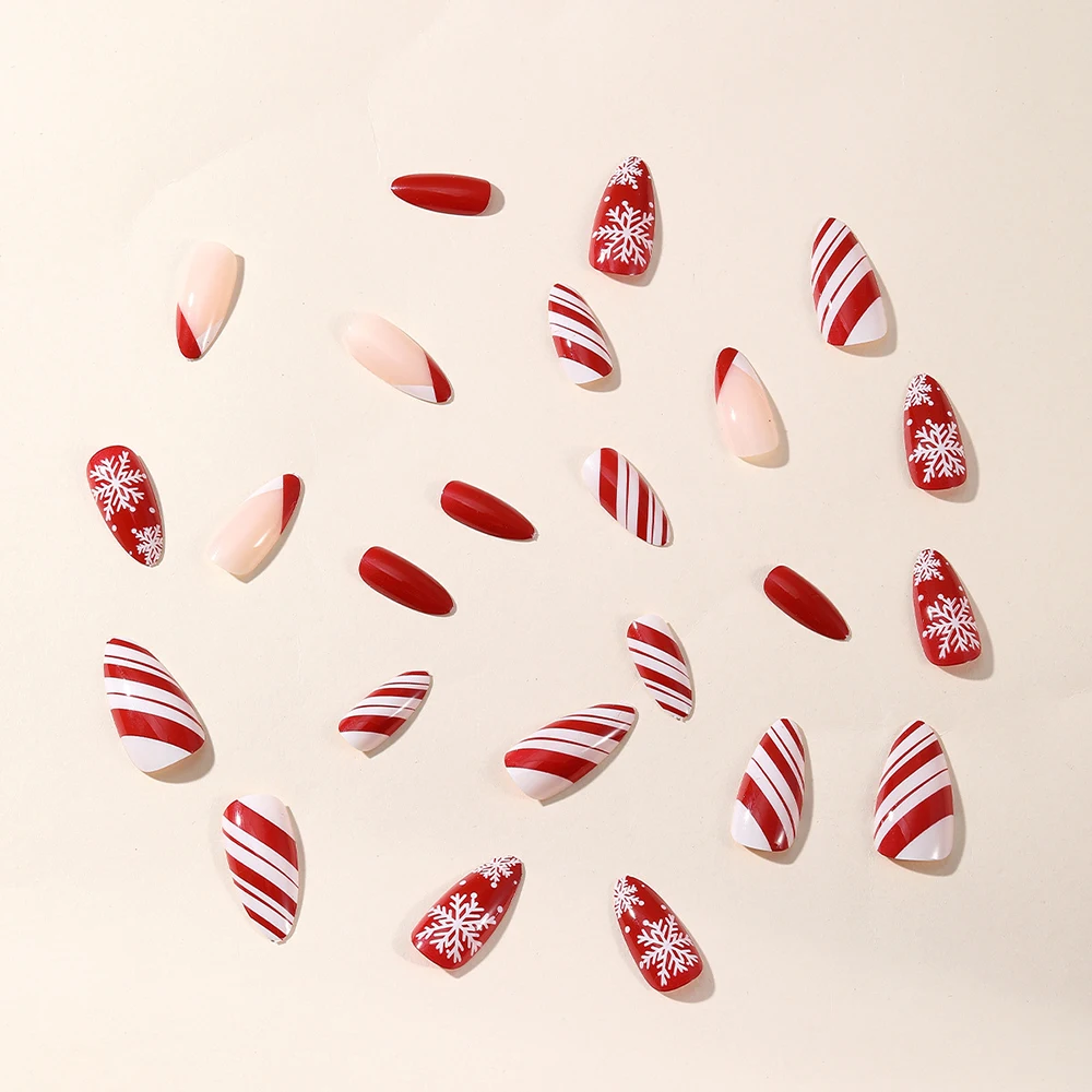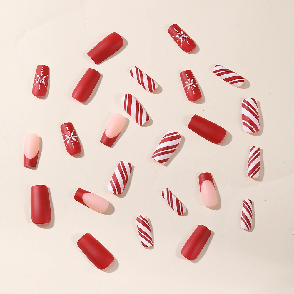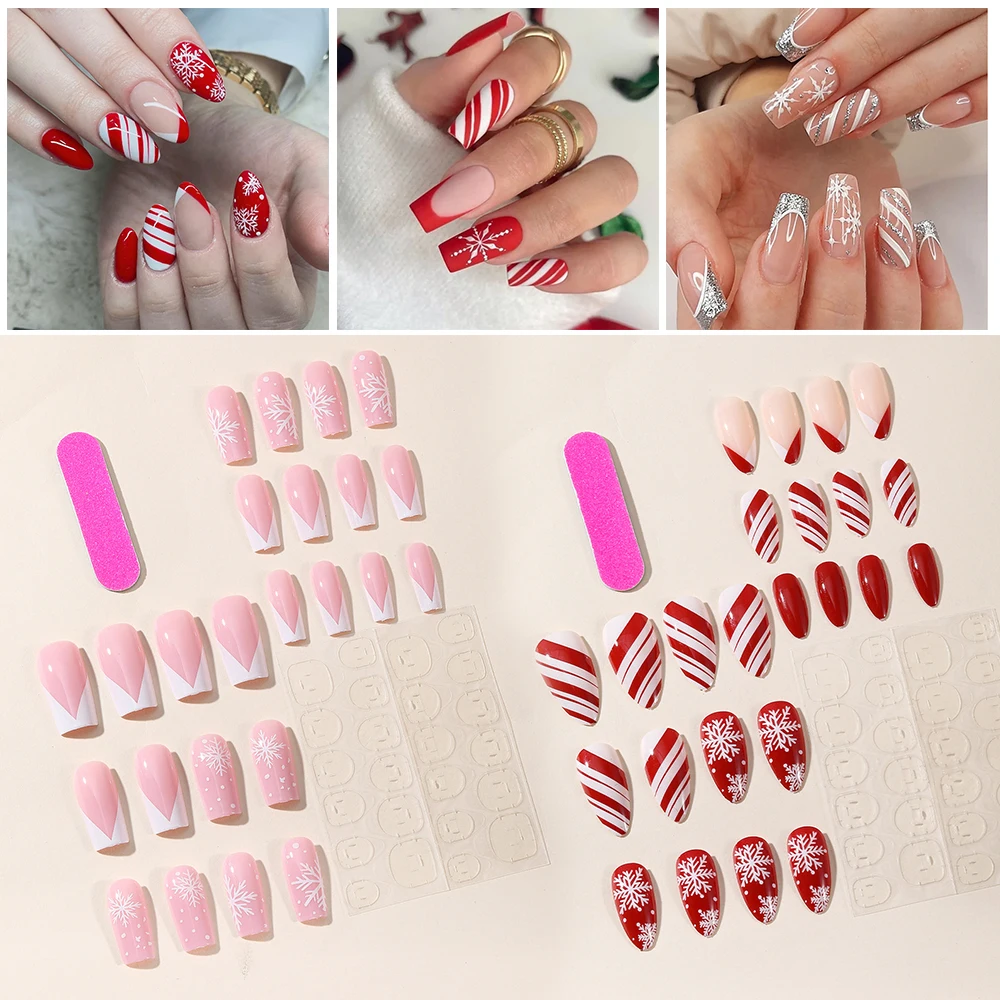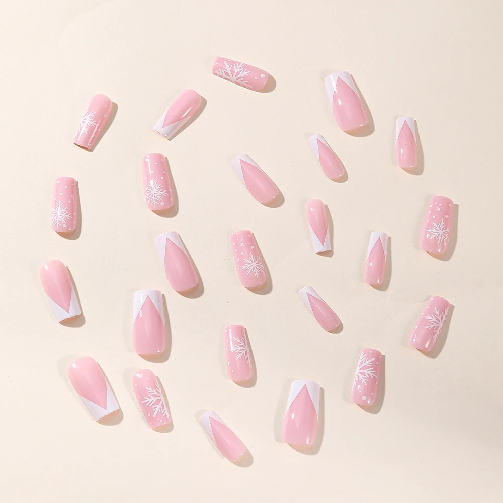 24 pcs natal kuku palsu balet panjang extension kuku penutupan full manicure snowman yang dapat dikenakan pers pada kuku palsu wanita dekorasi kuku wanita
