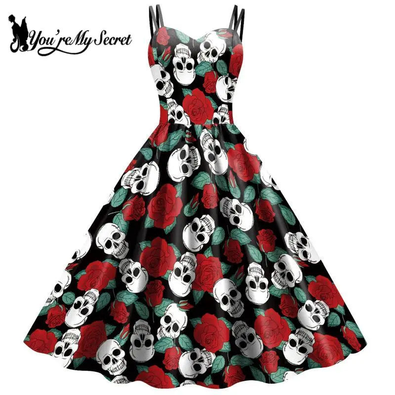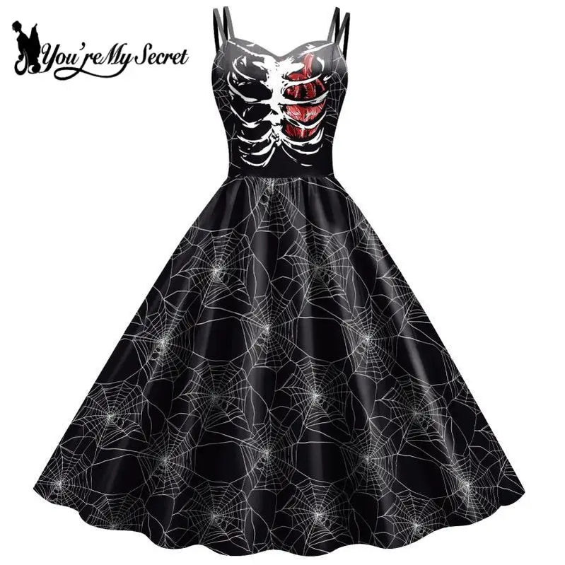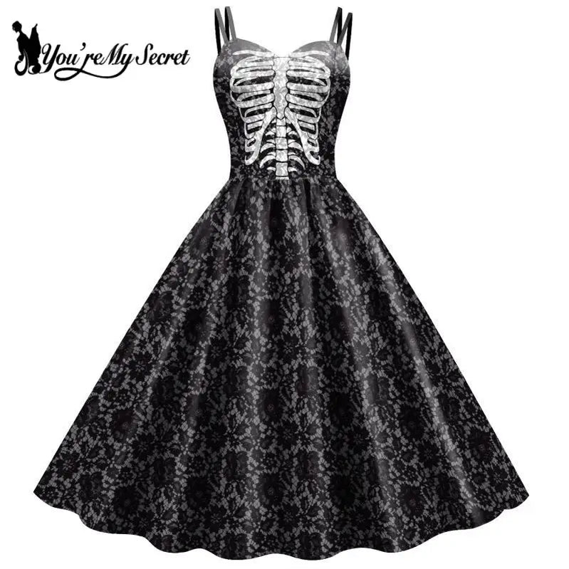Fancy Skeleton Halloween Women Dress Girl Carnival Party Dresses Female Goth Horror Costume Rockabilly Dress