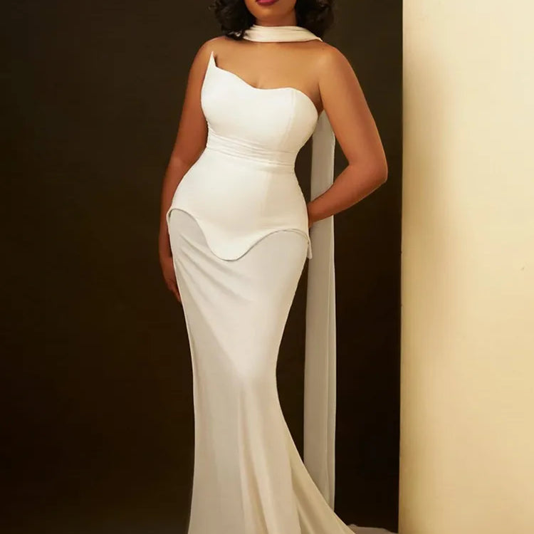 Luxury Sexy Strapless Backless White Black Maxi Long Women Celebrity Dress Elegant Party Evening Club Vestido Clothing