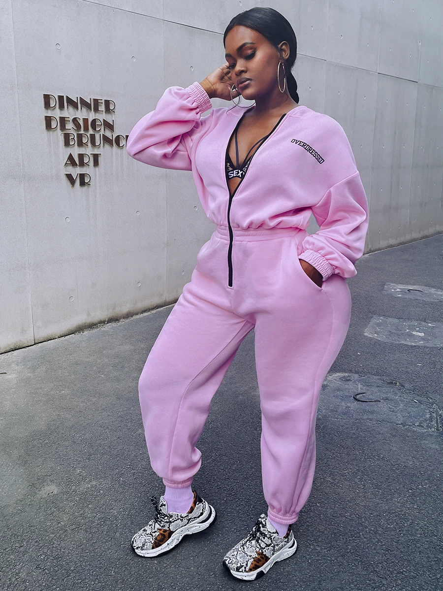 Loose Sweat Jumpsuit Winter Autumn Long-sleeve Loose Romper Female Vintage Pocket Sweatpants Overall Thick Warm Jumpsuit