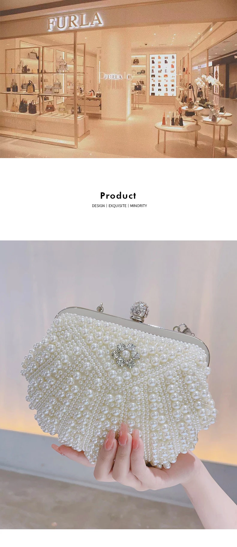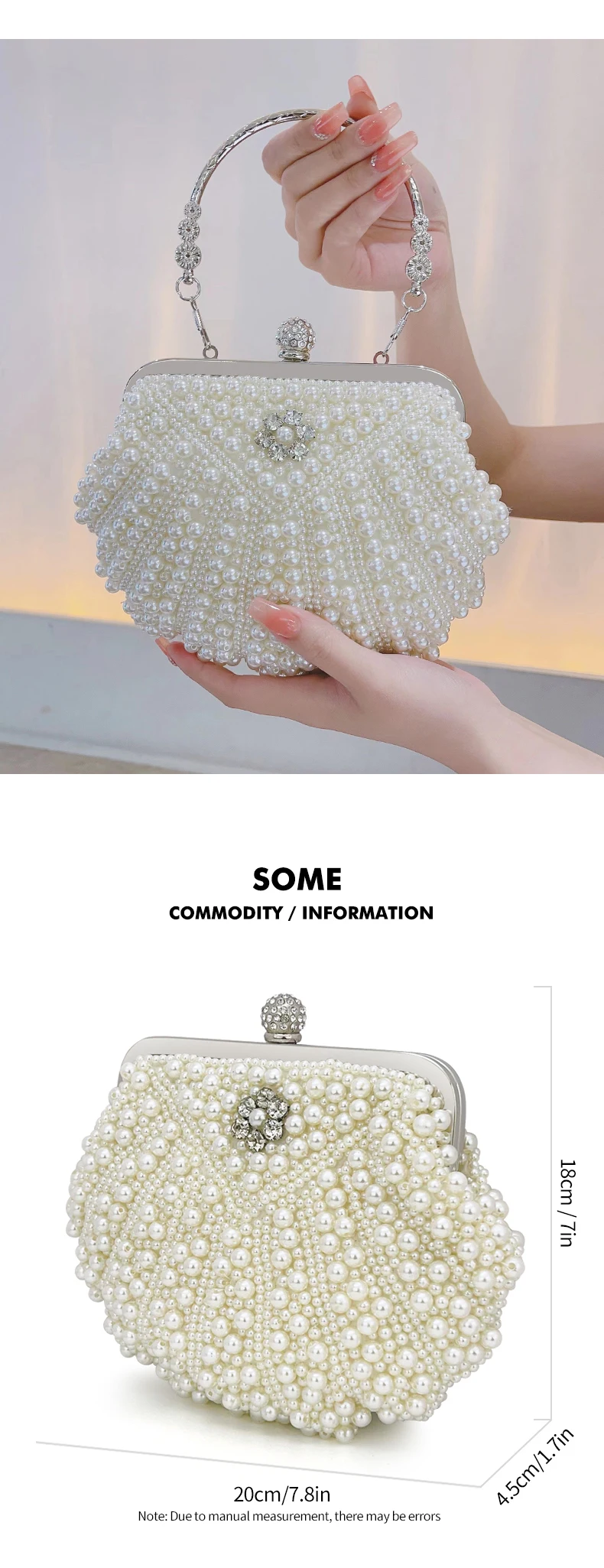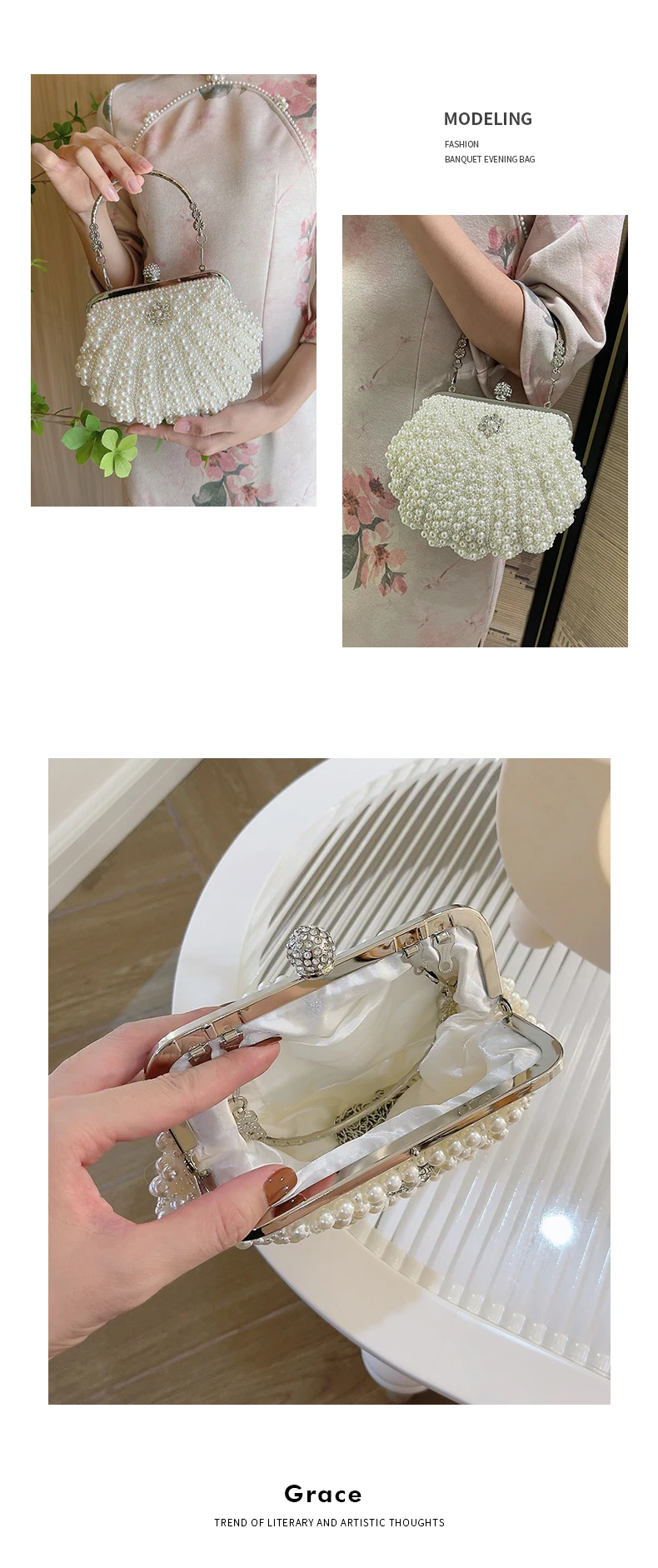 Shell Pearl Rhinestone Dinner Bride Dress Bag Banquet Diagonal Small Bag Cocktail Party Handbag Evening Clutch Purse