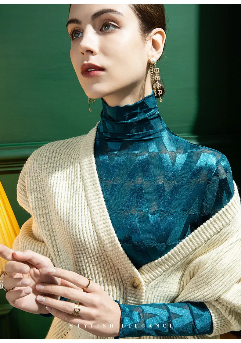 Long Sleeve T-shirt Top Spring High-neck Lace Mesh Bottoming Shirt Women's Embroidery Perspective Sexy Plaid Y2k Tops