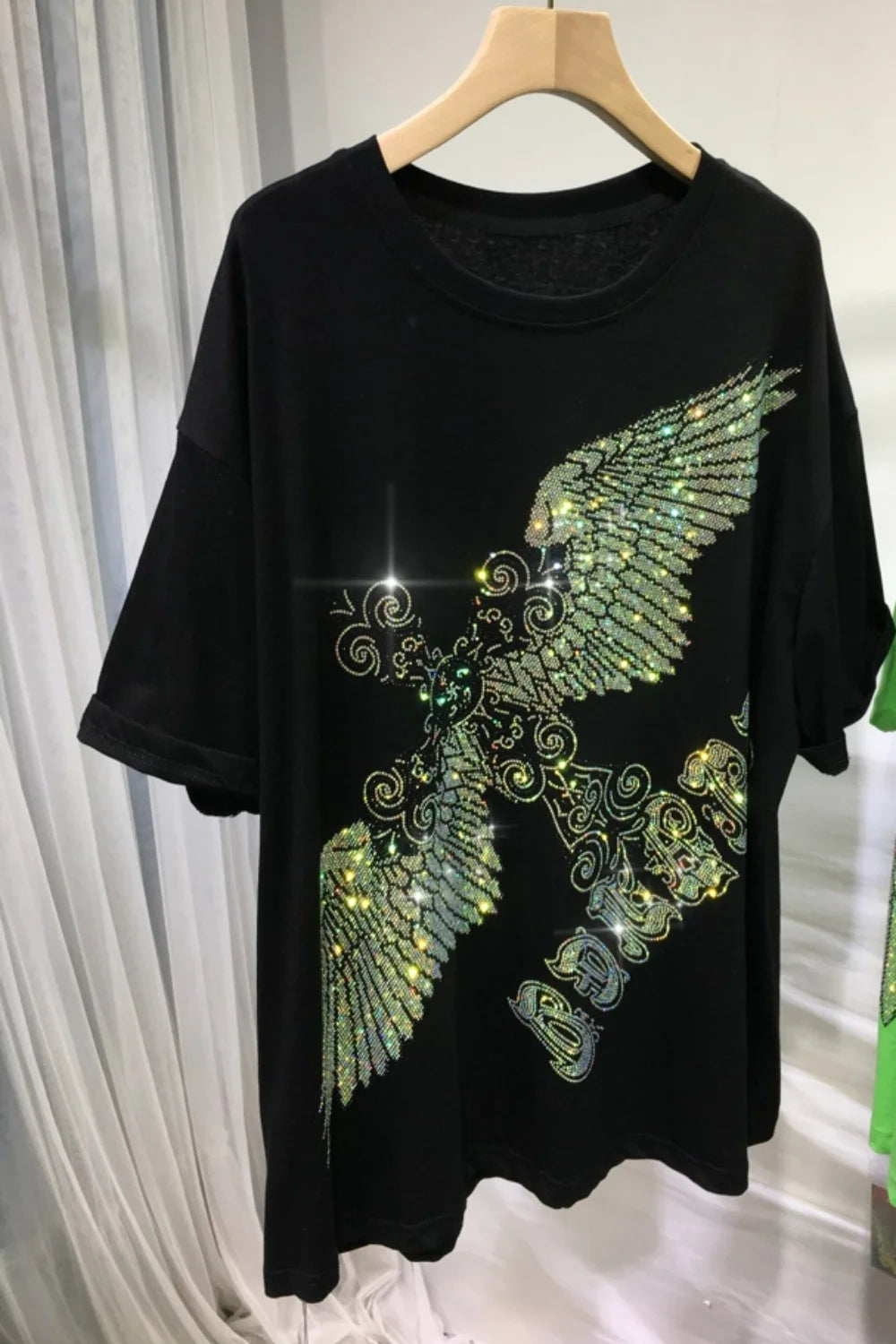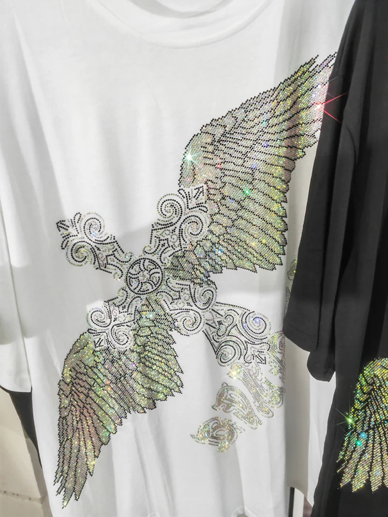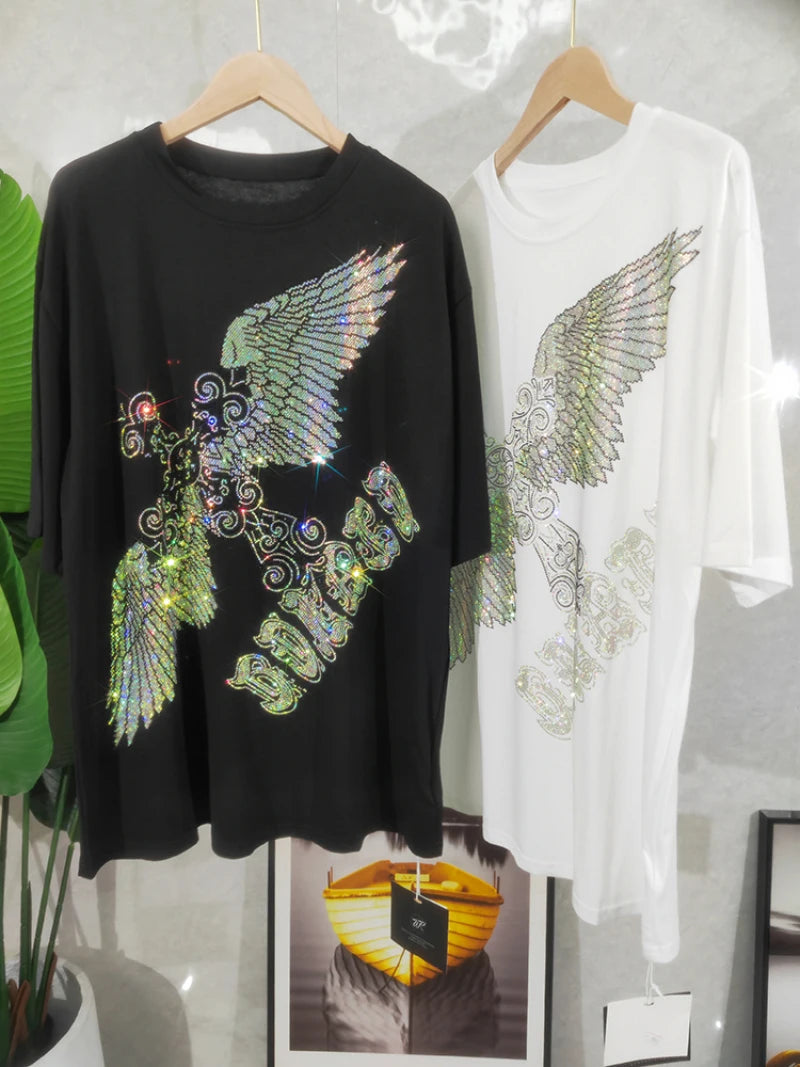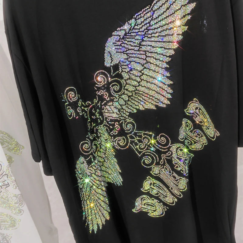 Rhinestone Eagle Luxury Big Size T Shirt Cotton 150KG Plus Size Women Men Brand T-shirt Summer Loose Fit Black Women's Clothing
