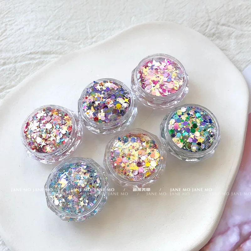 1pc skinnende havfrue glitter negl sekskant paljetter holografiske flak chunky blandet farge diy manikyrdekorasjon design tilbehør
