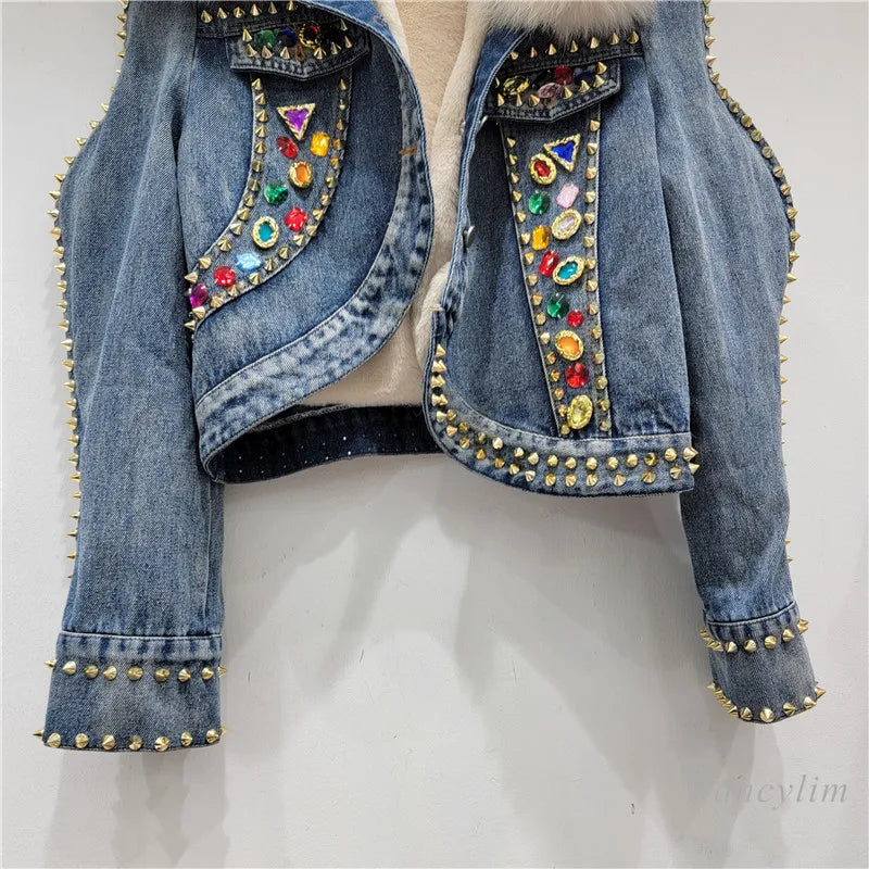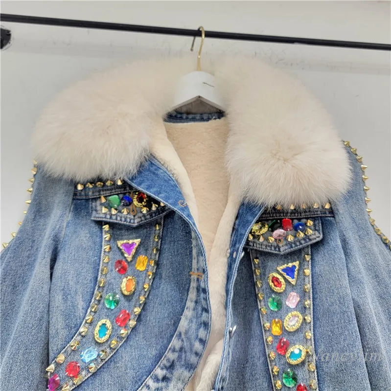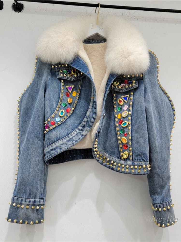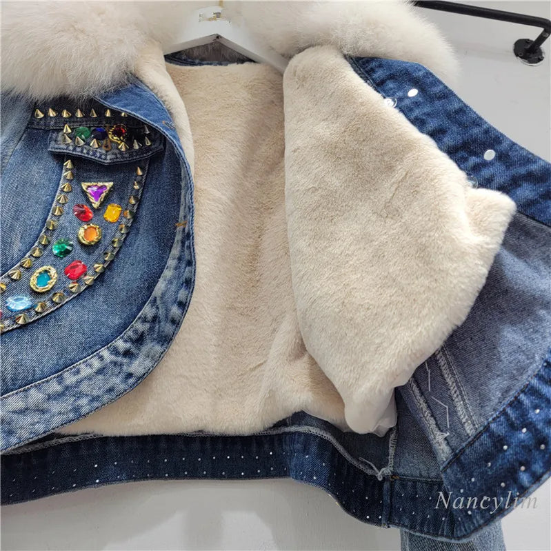 Europejska uliczna zimowa kurtka dżinsowa damska wyłożona polarami zagęszczona ciepła ulica krótkie ubrania parka Casaco feminino