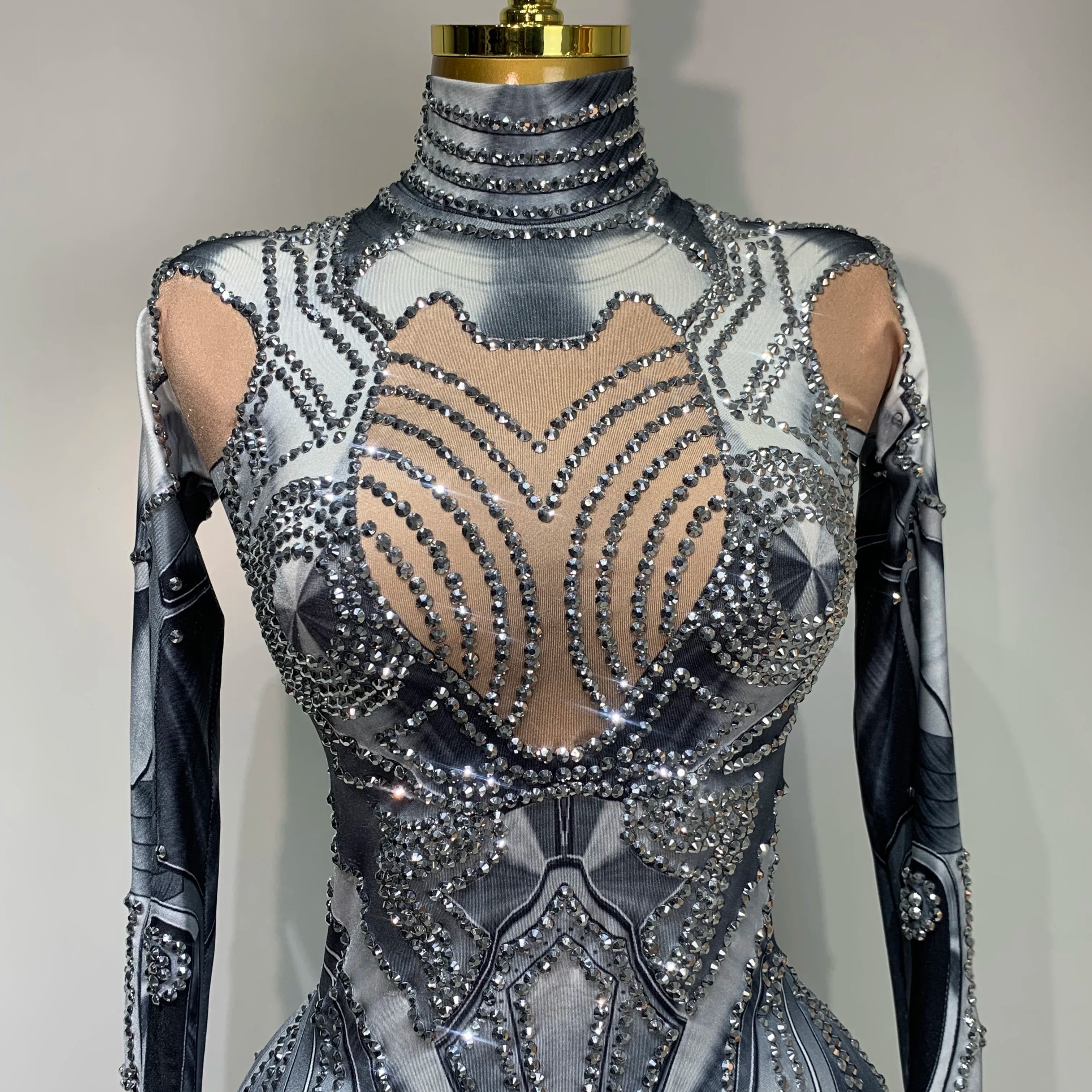 2025 Sexy Stretchy Performance Dance Nightclub Rompers Singer Stage Wear Sparkly Rhinestones Jumpsuit Gloves for Women Costume