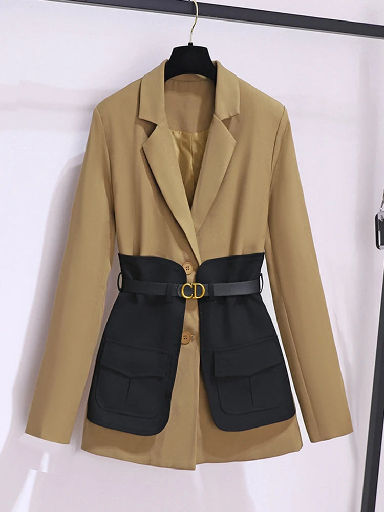 Autumn Winter Blazer For Women Patchwork Color Korean Fashion Design Casual Coat And Jacket Women With Belt Outwears