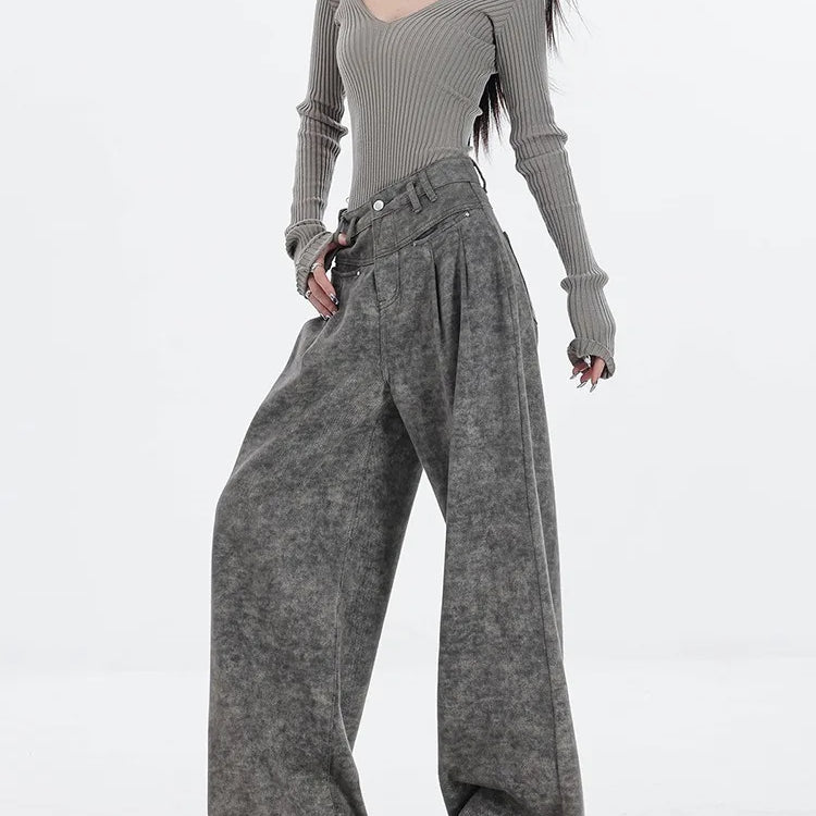 Calça jeans feminina casual primavera Y2K estilo punk grunge, estilo americano retrô, cintura alta, reta, bolsos, hip-hop