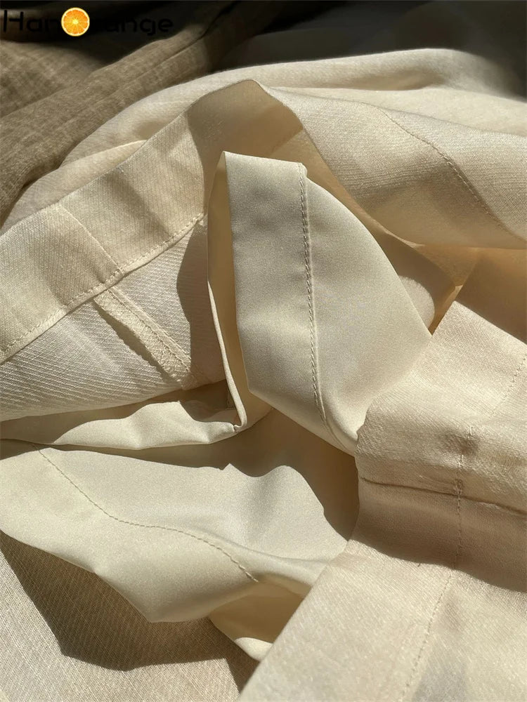 Calças femininas casuais de linho HanOrange Summer Lazy na altura do joelho, soltas, finas, antitransparentes, com perfil em A, calças Five Cents