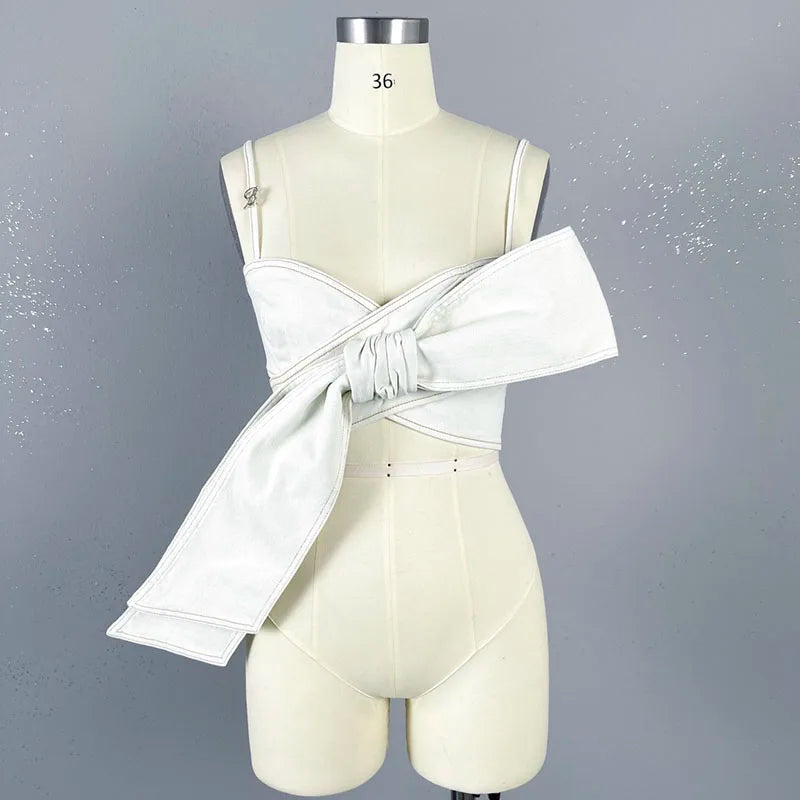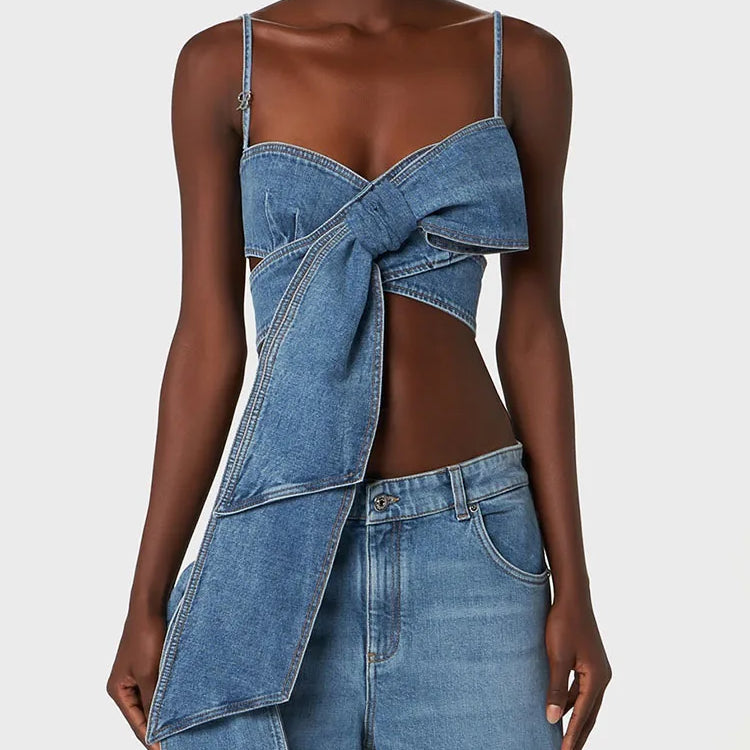 Camisola sem mangas com laço tridimensional primavera e verão y2k, top curto feminino, moda coreana