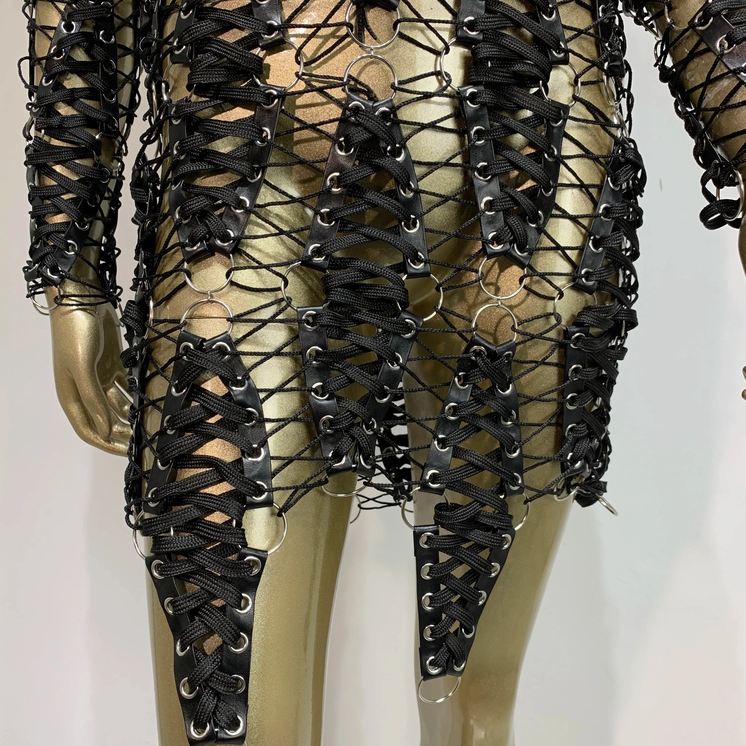 Vestido curto preto sexy de manga comprida com decote em V e costas nuas, elegante para festa e boate