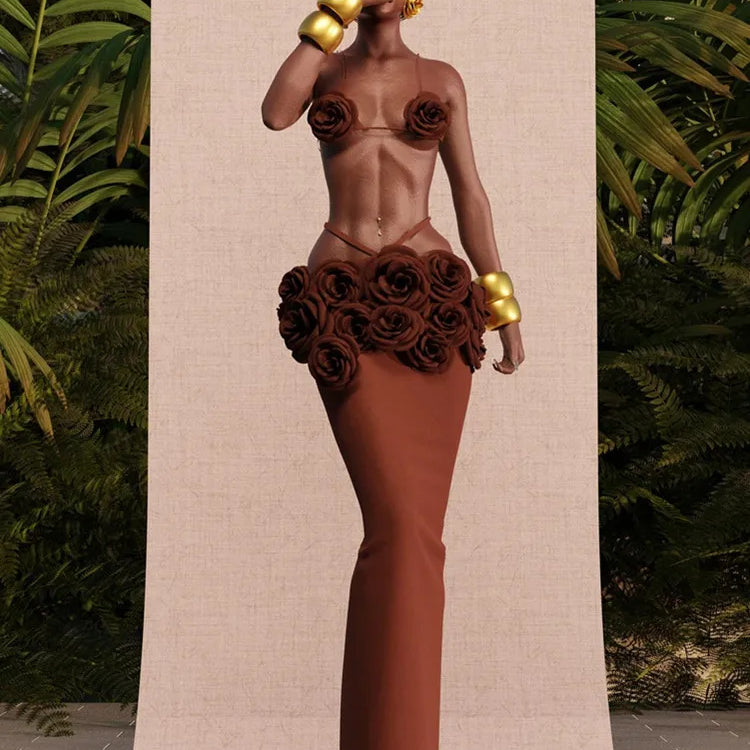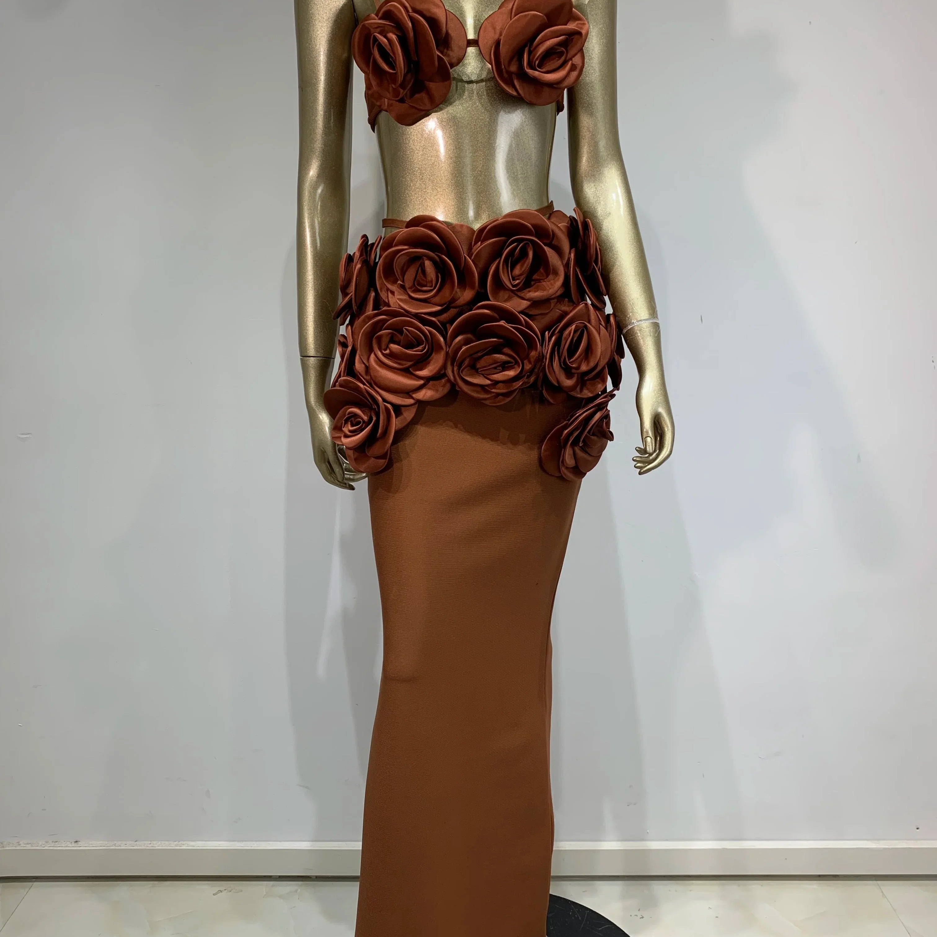 Conjunto de saia longa e longa com alças largas e costas nuas, estilo celebridade, 2025, de malha, elegante, para festa noturna