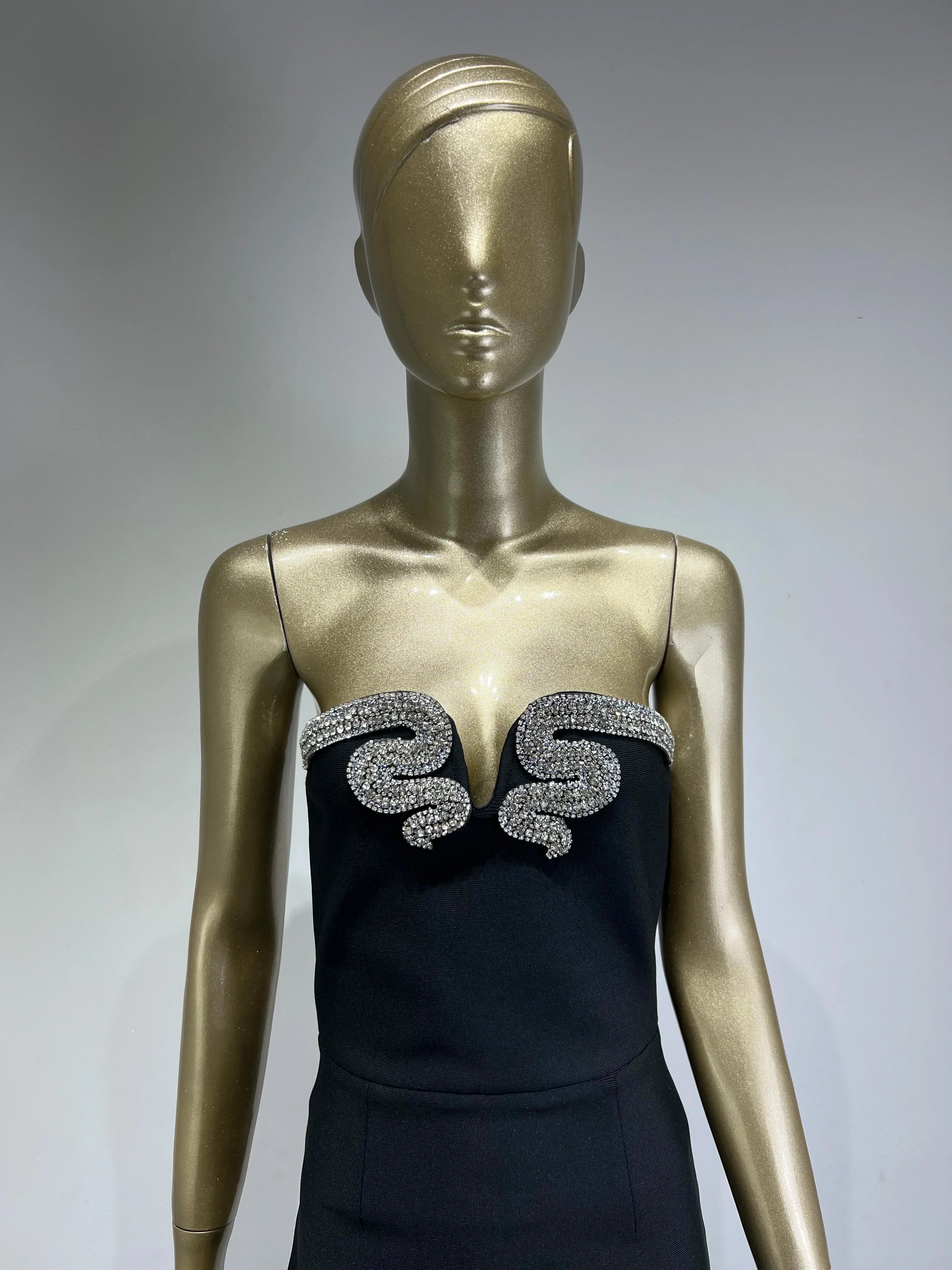 Vestido longo preto longo, sem alças, colado ao corpo, elegante, para festa noturna, celebridades, sexy, sem costas, diamantes