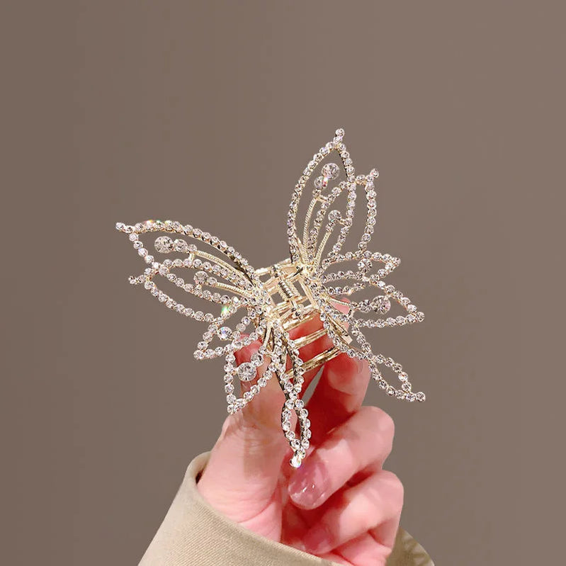 1 peça borboleta elástico grampo de cabelo acessório para trás da cabeça placa grampo de cabelo temperamento elegante pérola strass avançado se