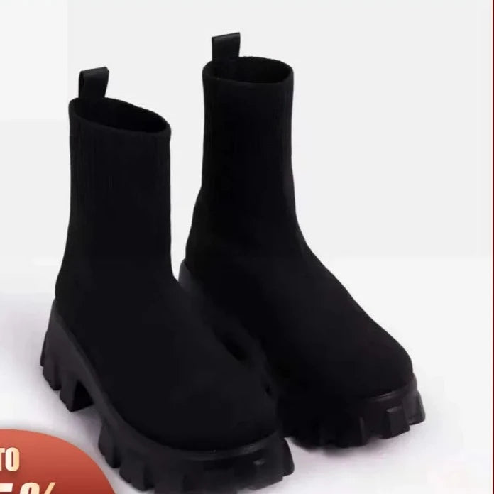 Outono inverno novo casal meias sapatos femininos de sola grossa casual tamanho grande net vermelho malha botas curtas botas femininas