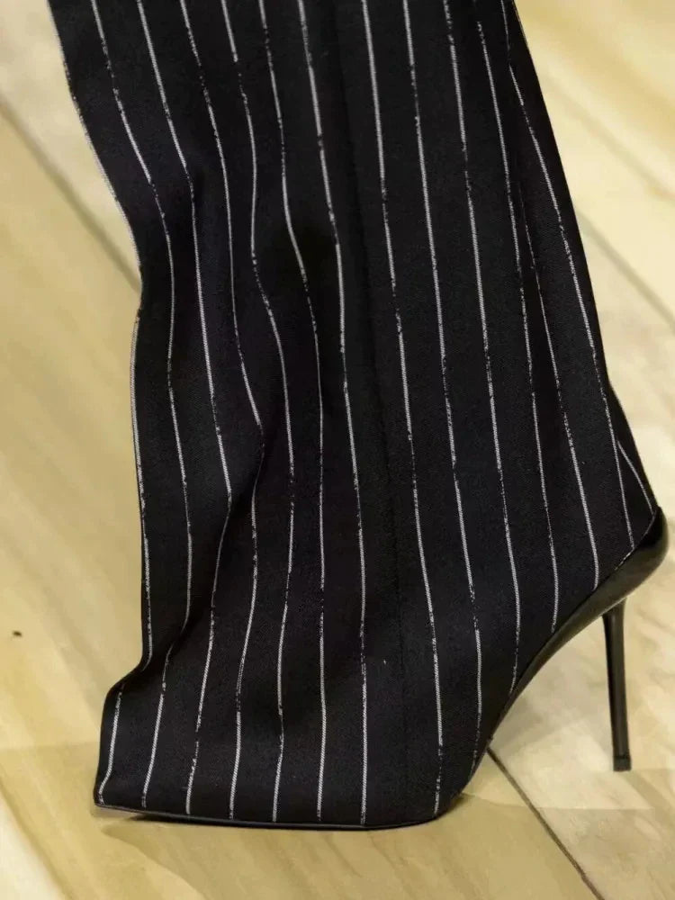 Botas femininas de salto alto na altura do joelho, moda outono/inverno, couro legítimo, manga média, botas femininas
