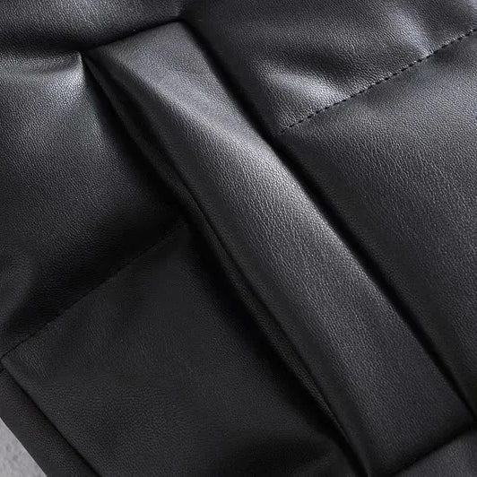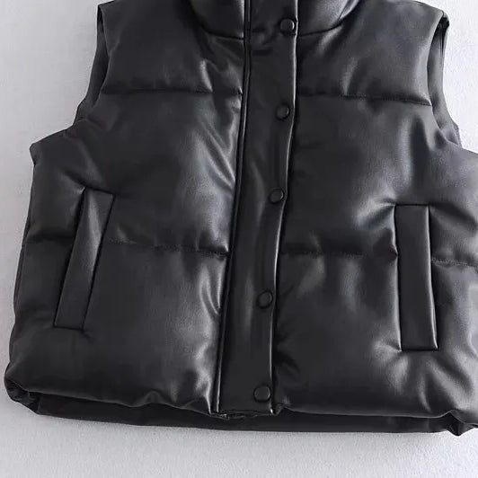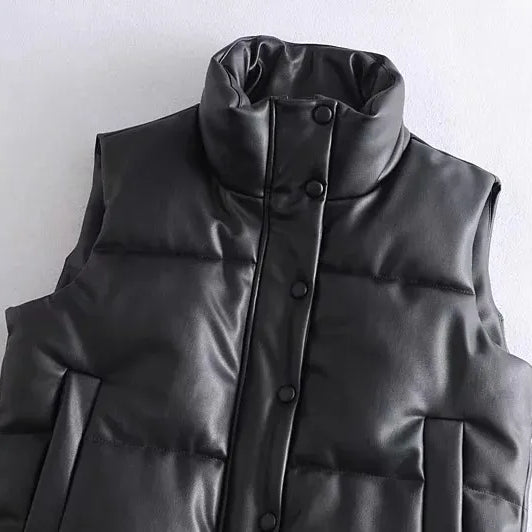 Outono inverno casaco de couro do plutônio feminino preto gola coletes moda feminina zíper elegante coletes curtos senhoras do sexo feminino