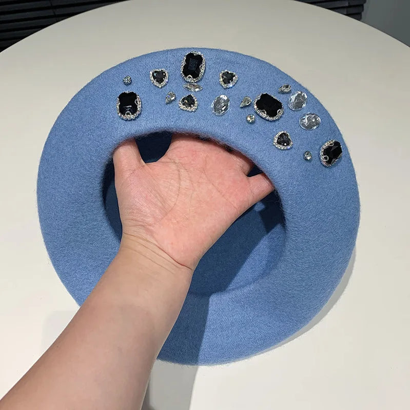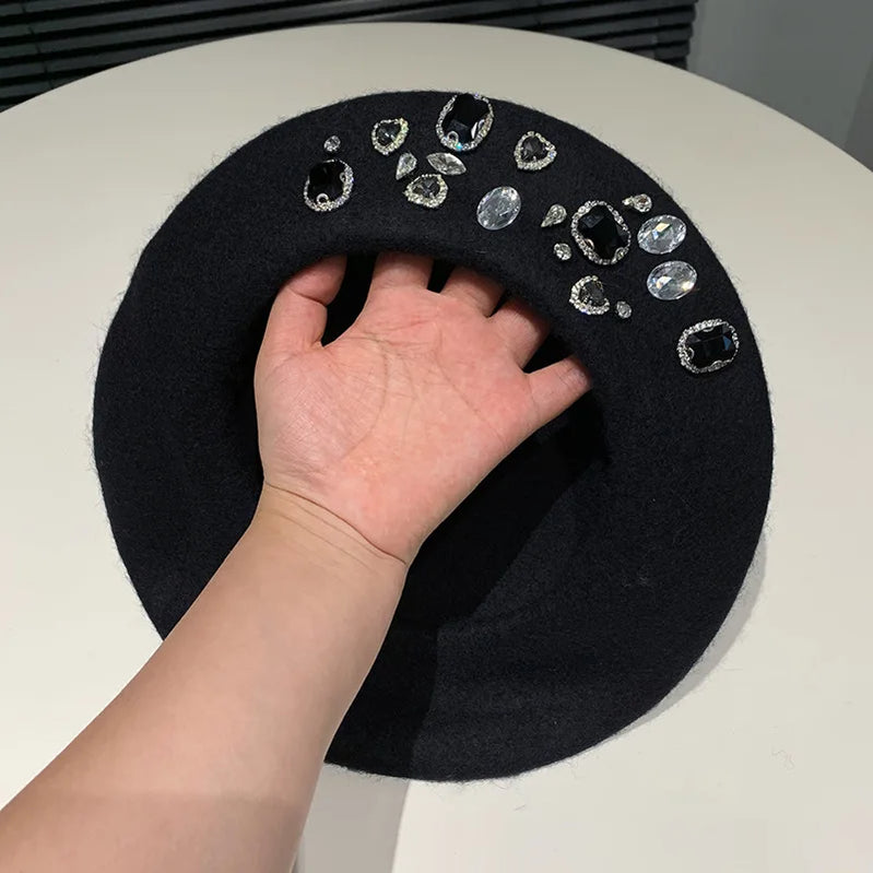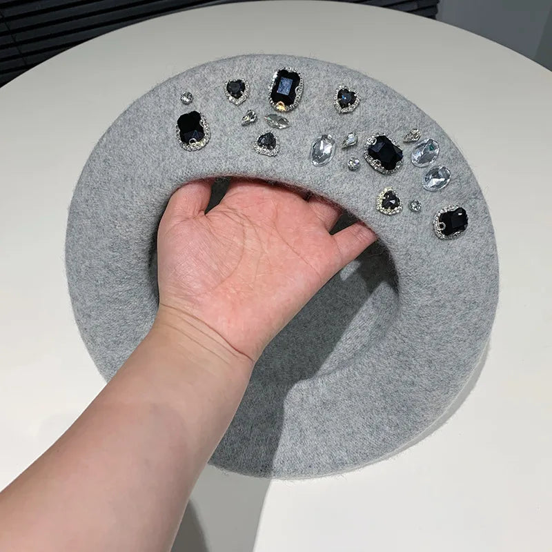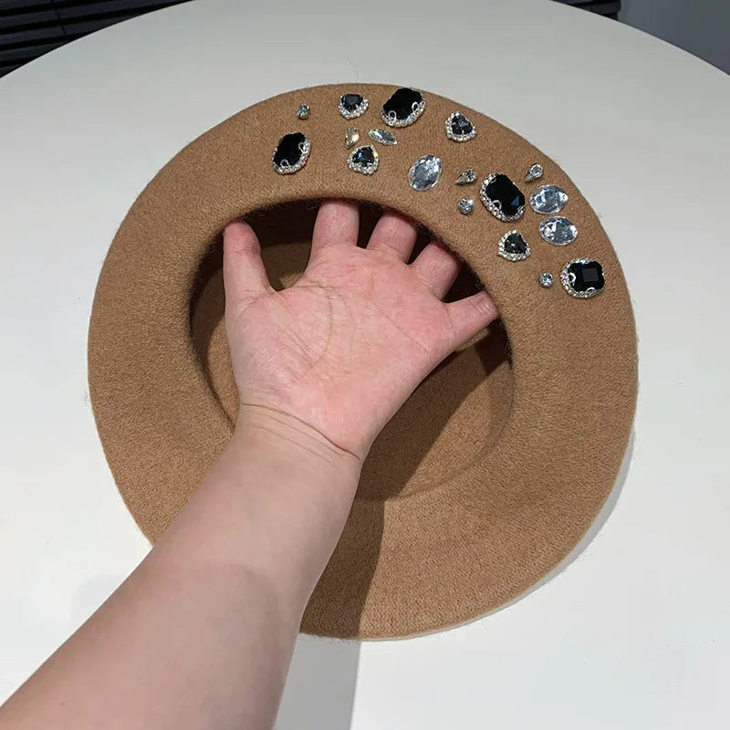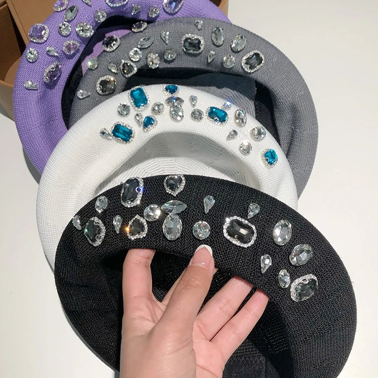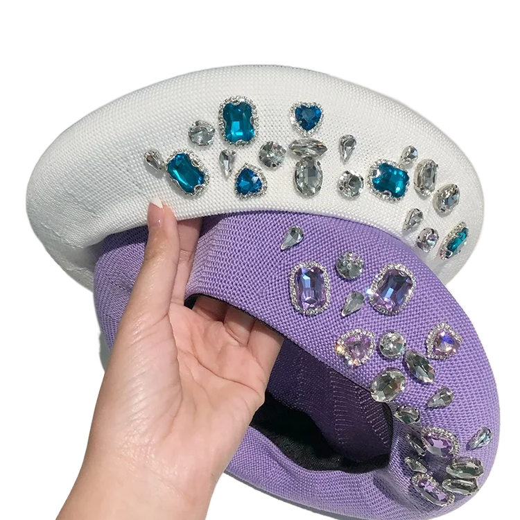 Boinas femininas chapéu sem aba elástico confortável strass Y2K boné outono feminino liso cor algodão