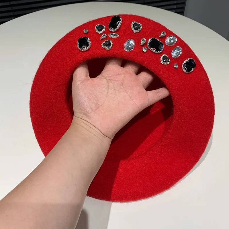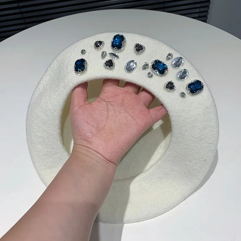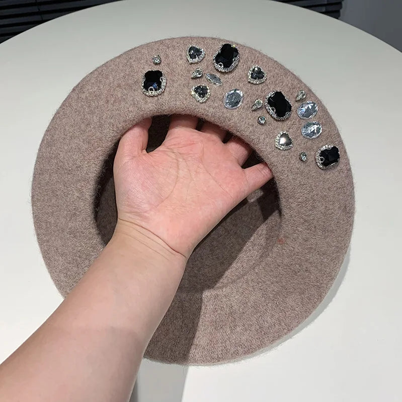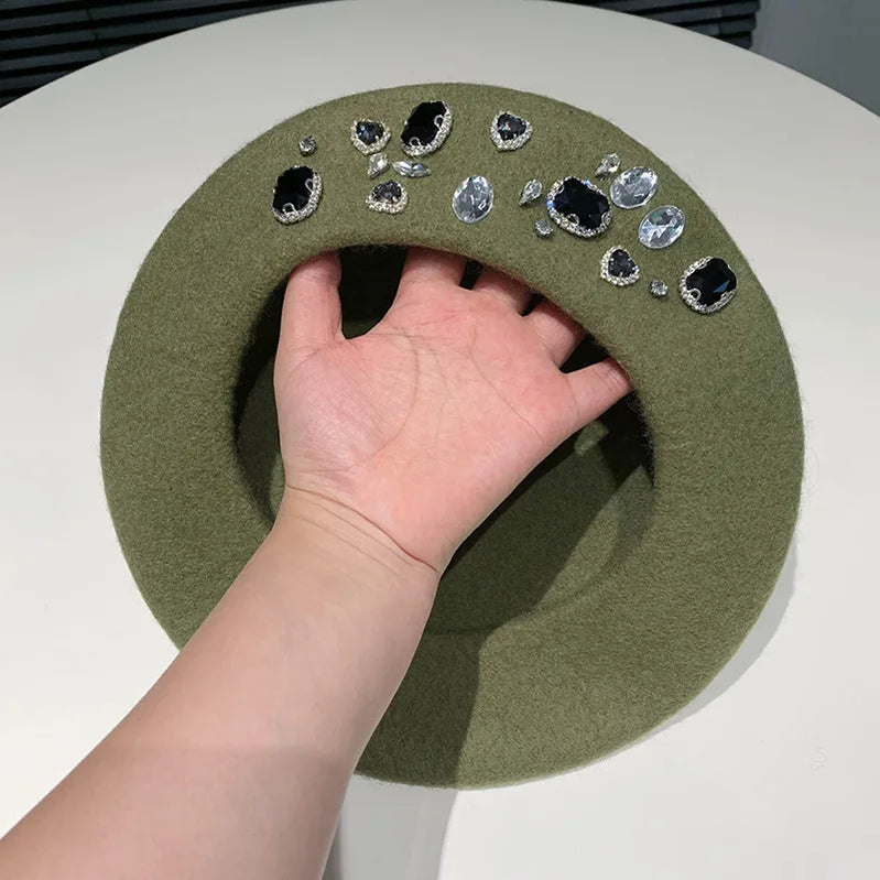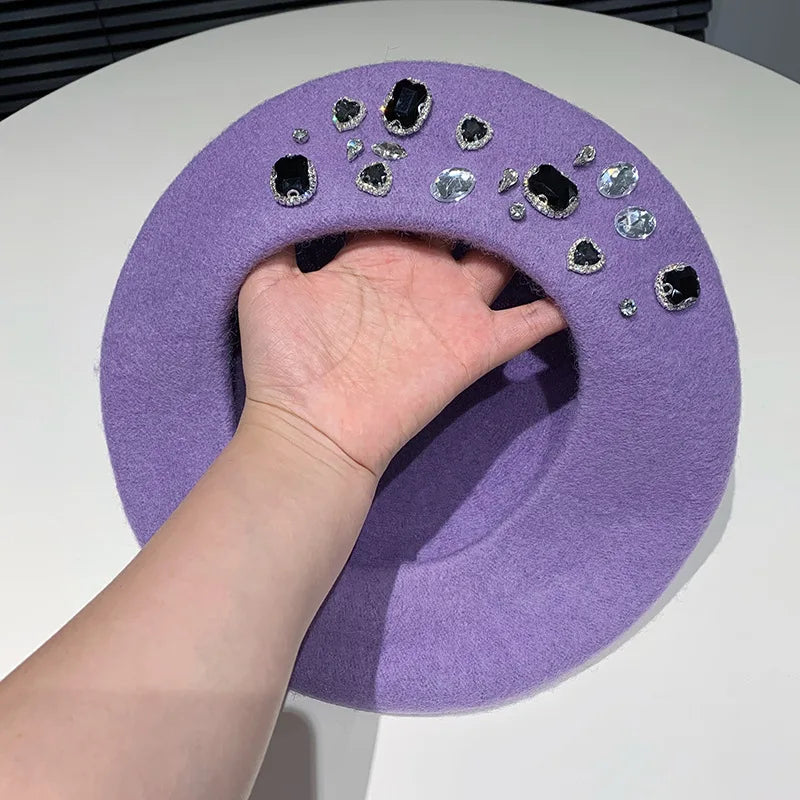 Boinas femininas chapéu sem aba elástico confortável strass Y2K boné outono feminino liso cor algodão
