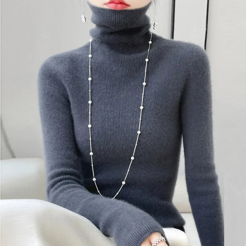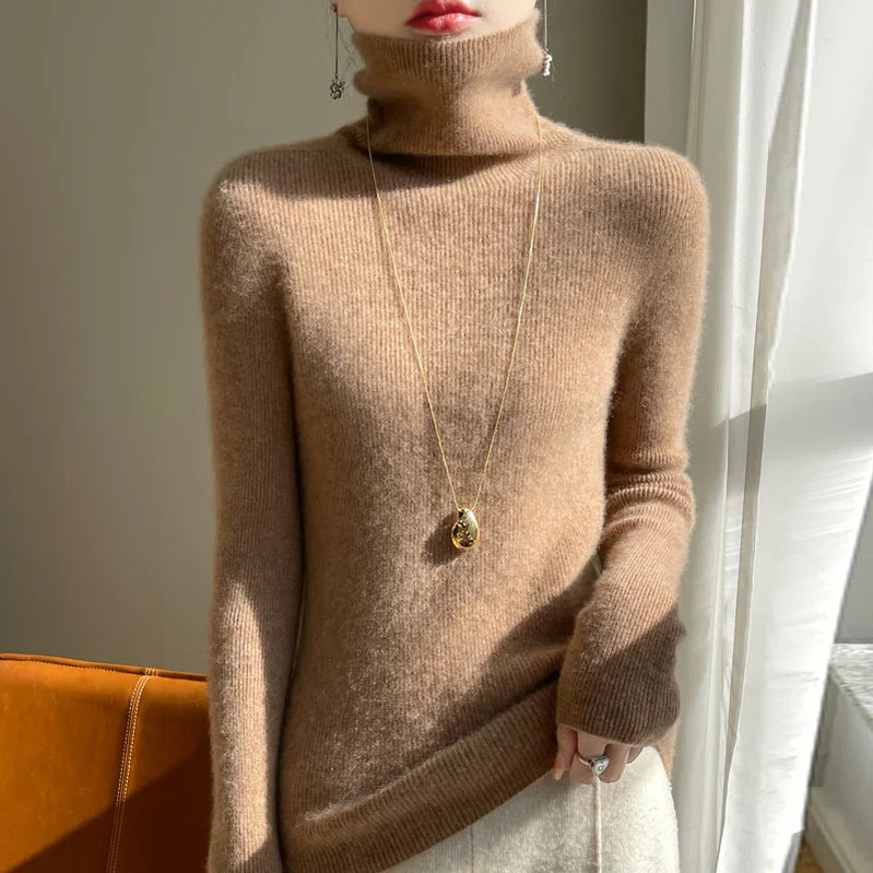 Suéter de caxemira feminino, suéter de caxemira com gola alta, suéter casual de caxemira para outono e inverno