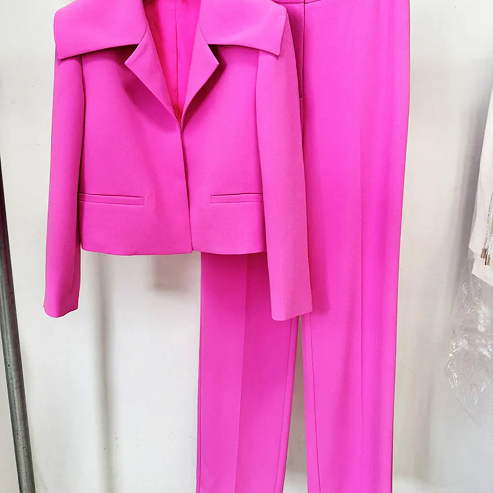 2024 Elegant Women's Light Luxury Suit Pants Set with Large Collar Long Sleeve Slim Fit Short Suit Coat and Pants Two Piece Set