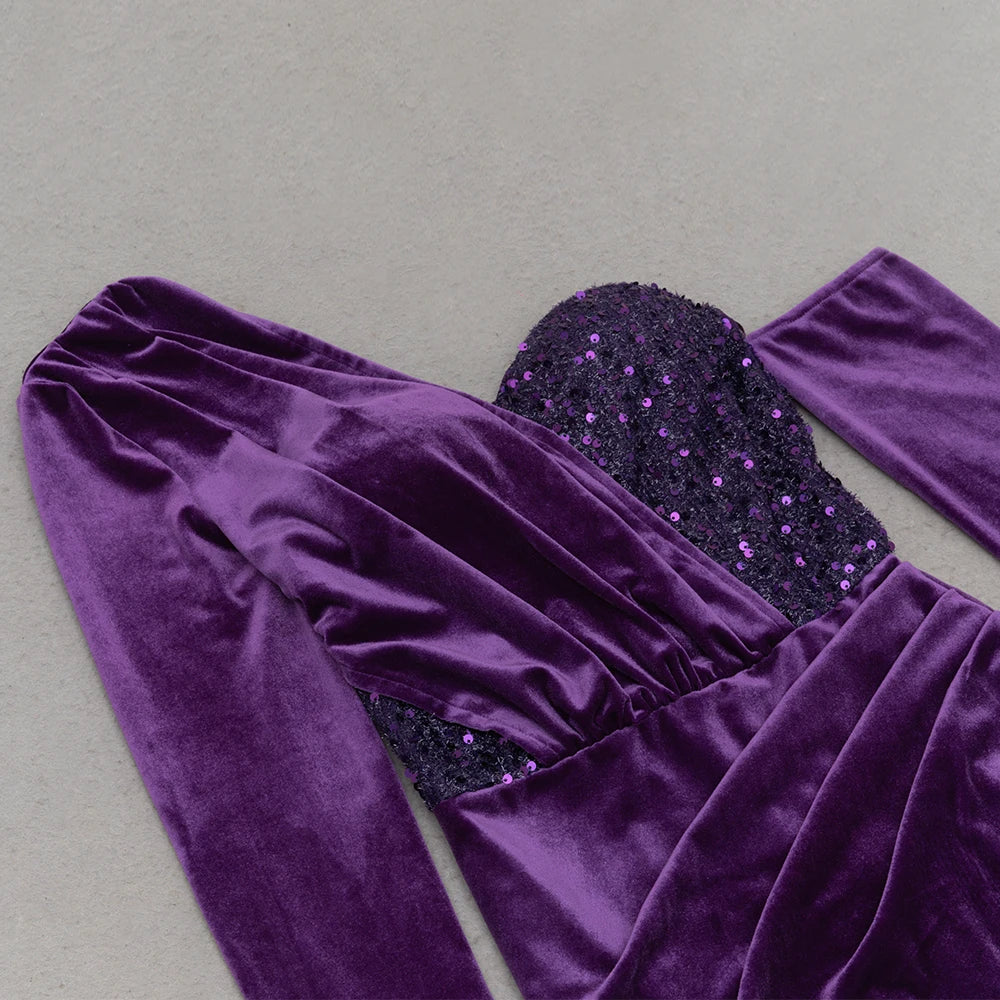 2024 Sexy Women Light Luxury Sparkle Velvet Dress with Diagonal Collar Long Sleeve Draped Bodycon Split Body Long Dress Vestidos