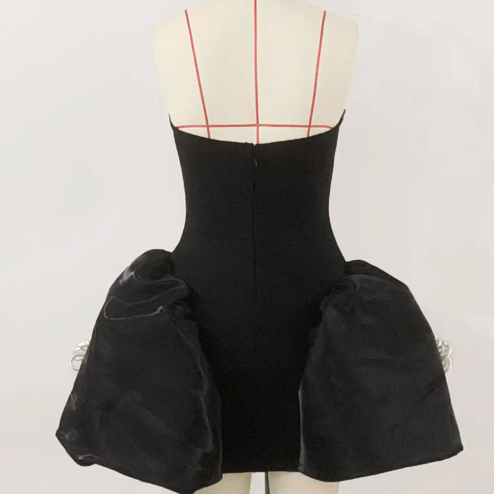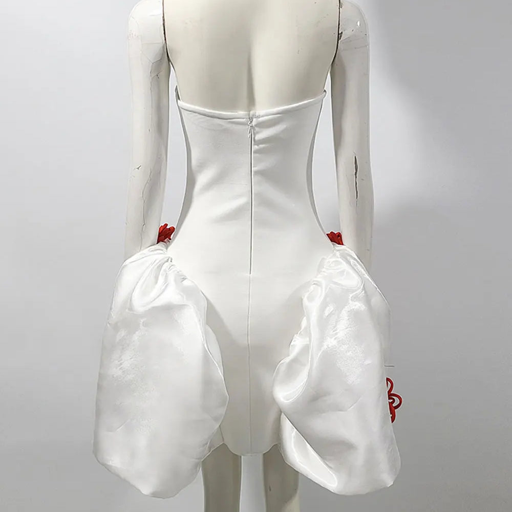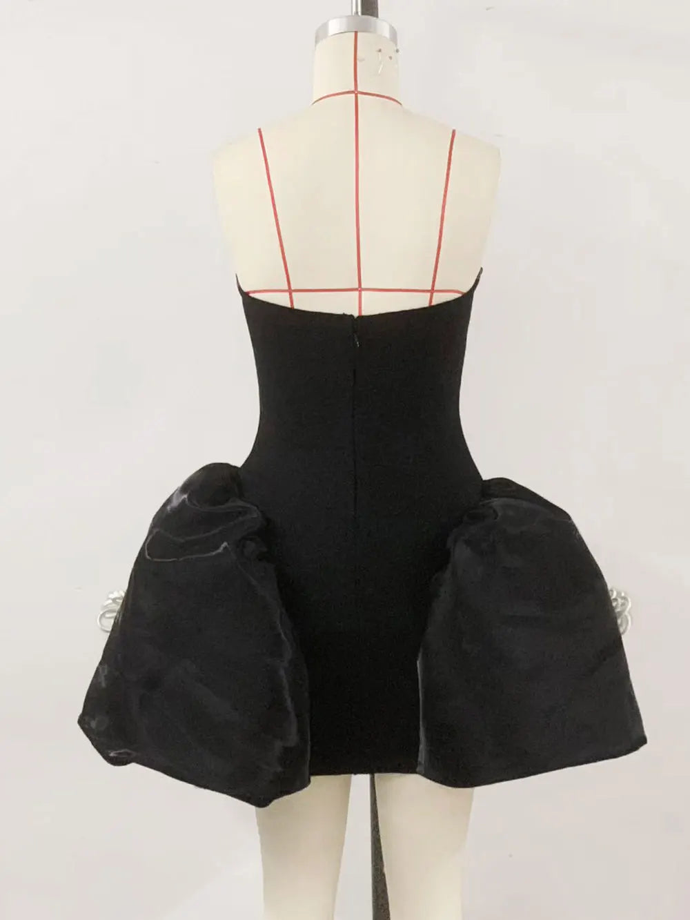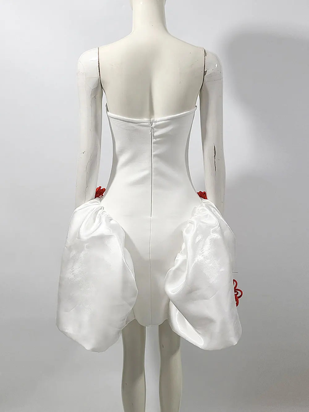 2024 Sexy Women's 3D Flower Decorative Puff Dress Strapless Sleeveless Backless A-line Mini Dress Cocktail Evening Party Vestido